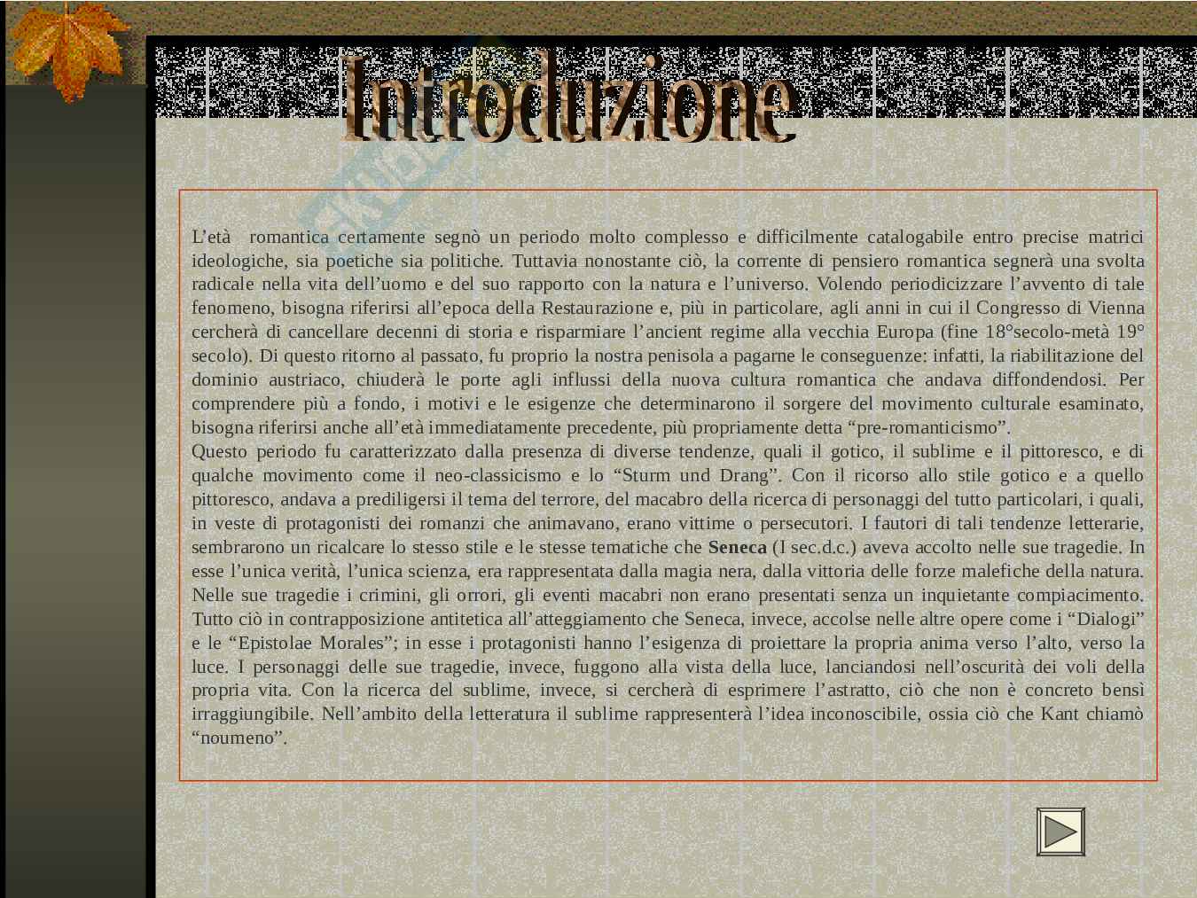 irraggiungibile. Nell’ambito della letteratura il sublime rappresenterà l’idea inconoscibile, ossia ciò che Kant chiamò