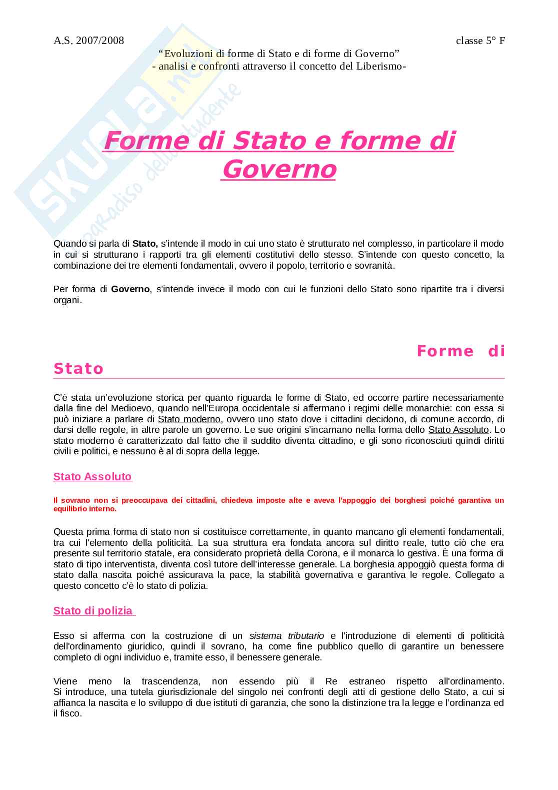 “Evoluzioni di forme di Stato e di forme di Governo” - analisi e confronti -
