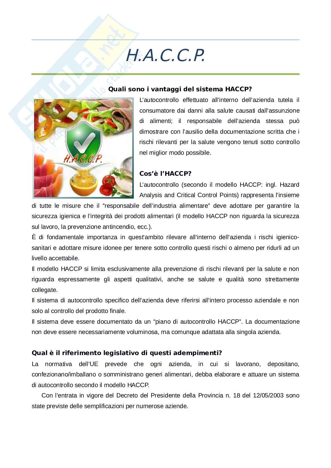 H.A.C.C.P. = Hazard Analysis Critical Control Point (analisi dei rischi e dei punti critici di controllo).