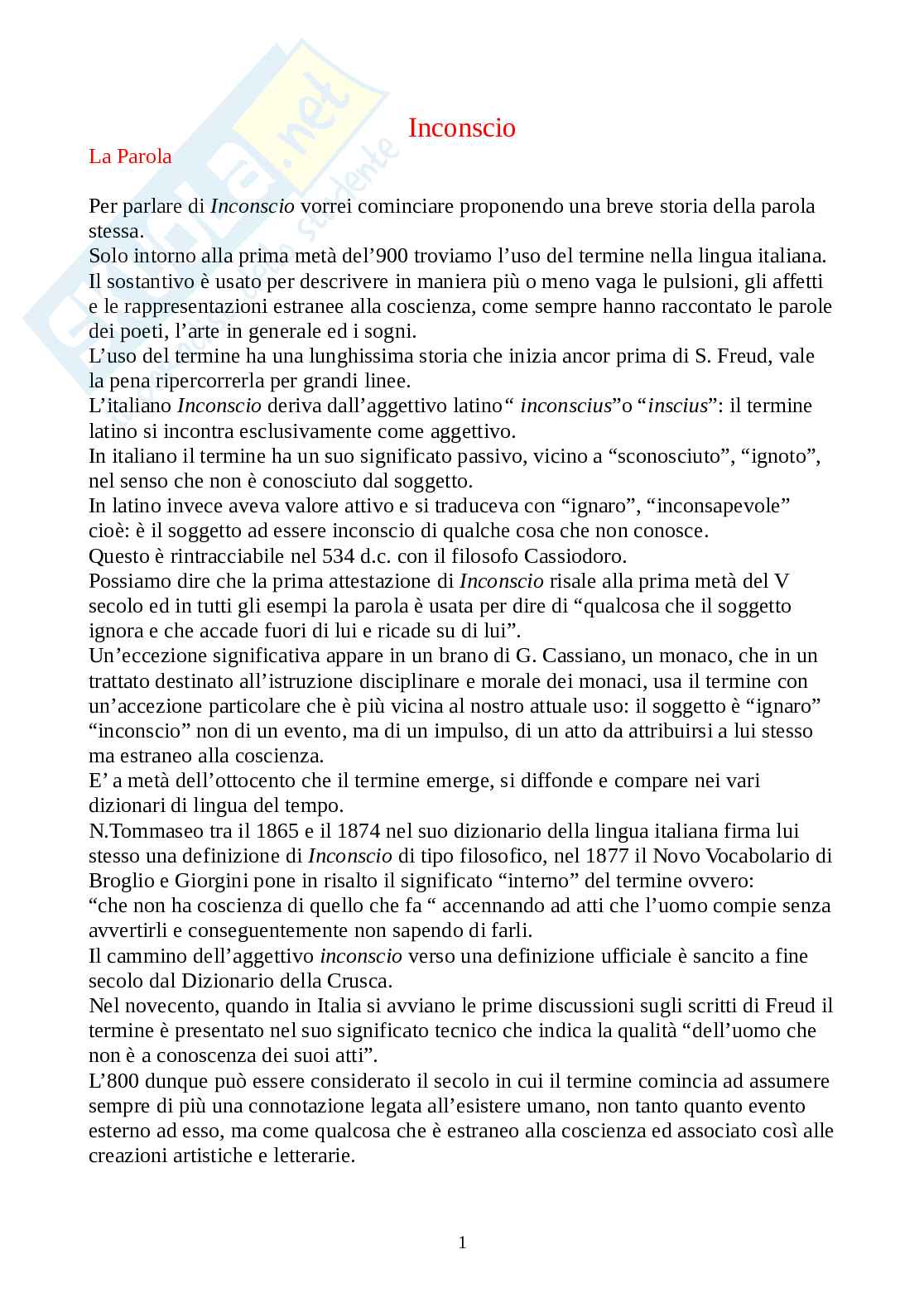 dell’Inconscio in relazione alle ricerche sulla psiche umana.