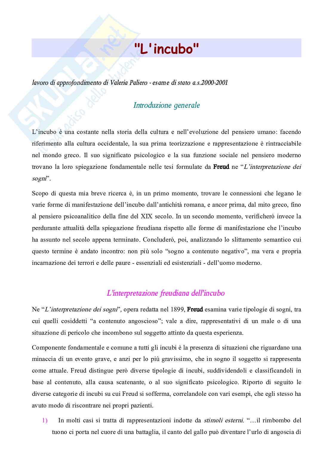 prettamente scientifico, passerei ora ad analizzare due incubi in particolare, desunti rispettivamente