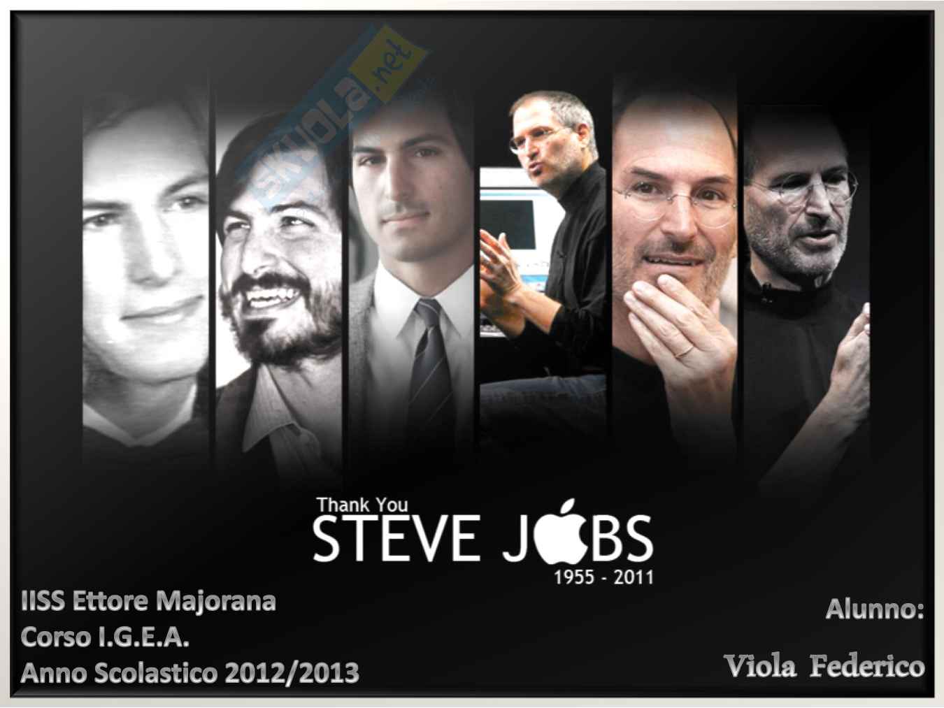 La seguente tesina di maturità ha come obiettivo quello di descrivere il tema dell'innovazione tecnologica attraverso la grande figura di Steve Jobs, uno dei fondatori della società informatica Apple, il cui successo è noto in tutto il mondo. La tesina permette un collegamento tra l'innovazione tecnologica e il progresso. Inoltre il progresso è uno dei principi su cui si focalizza il positivismo, un movimento filosofico e culturale che si ispira all'esaltazione del progresso. Tra gli argomenti che propone la tesina si ricordano: la Rivoluzione informatica del Novecento, i dati di bilancio della società Apple, il bilancio dello Stato, la Ricerca operativa e il discorso alla Stanford University.