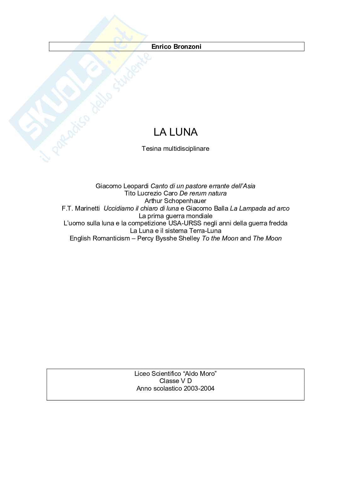 Giovinetta immortal, conosci il tutto. La luna essendo eterna è sempre uguale a se