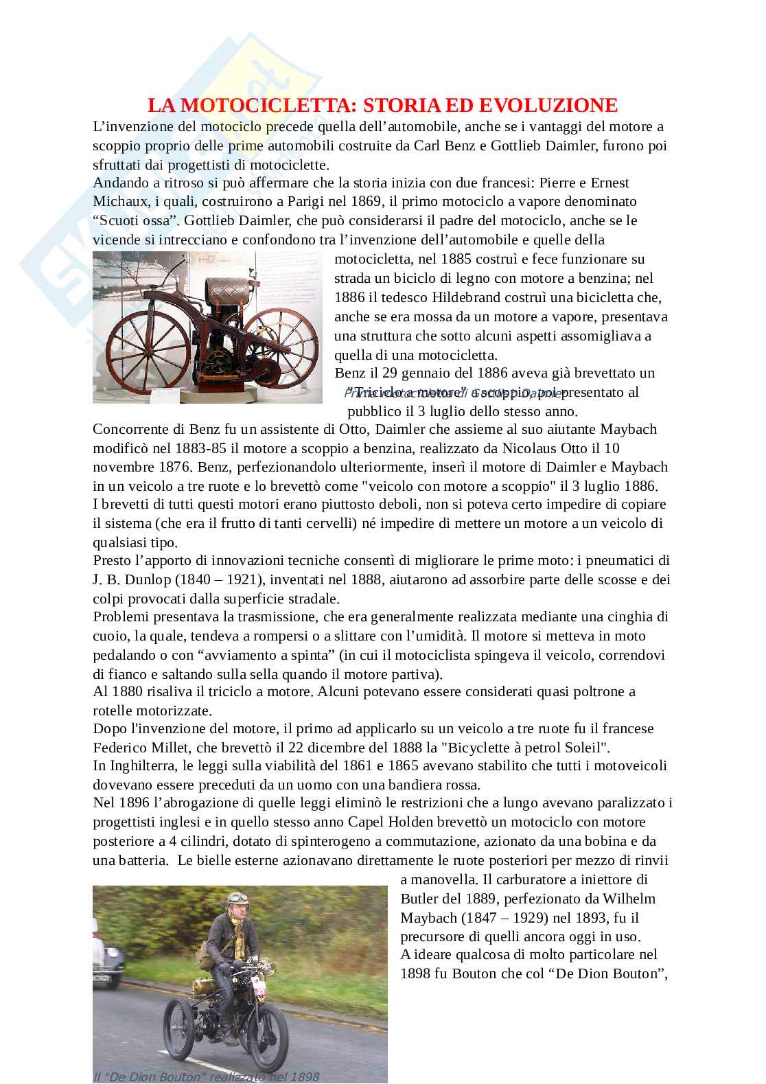 Questa tesina di maturità descrive la motocicletta, la sua storia, effettuando alcuni collegamenti disciplinari con delle materie scolastiche: in Storia viene preso in considerazione il periodo compreso tra la seconda metà del 1800 e i nostri giorni, in Macchine invece vengono presi in esame il motore a due e quattro tempi (differenze e il loro funzionamento).