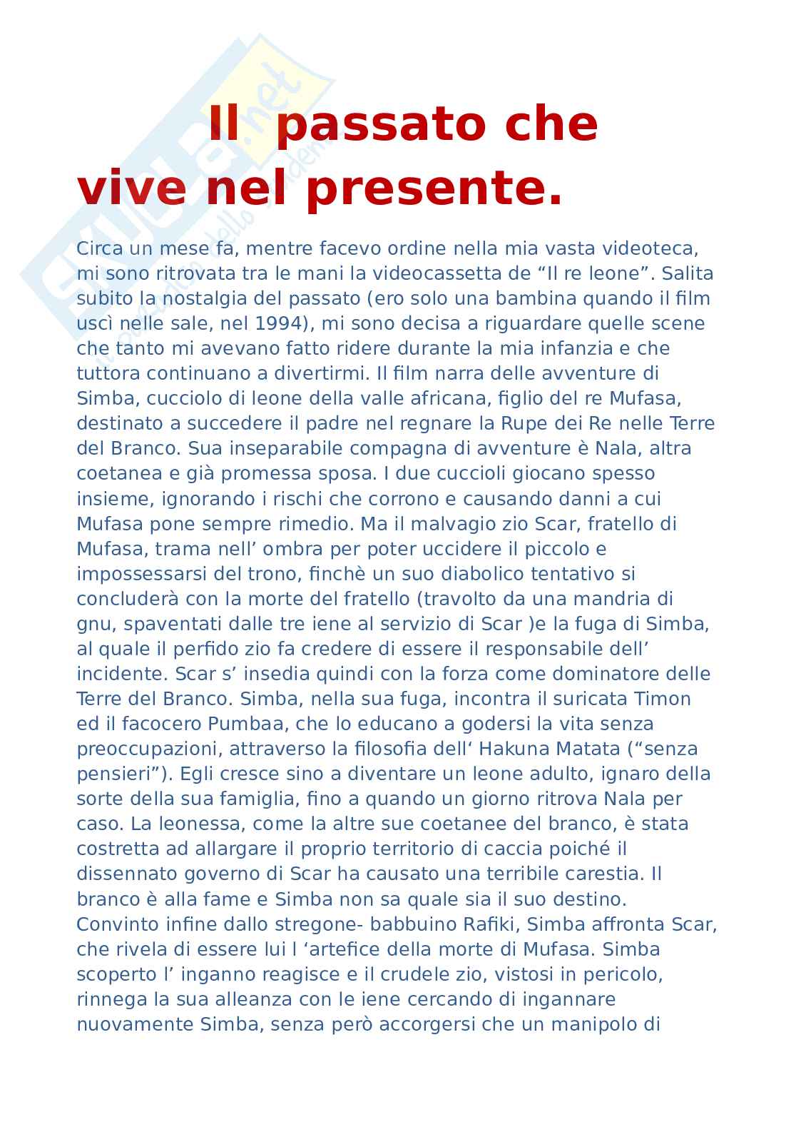 pensieri”). Egli cresce sino a diventare un leone adulto, ignaro della