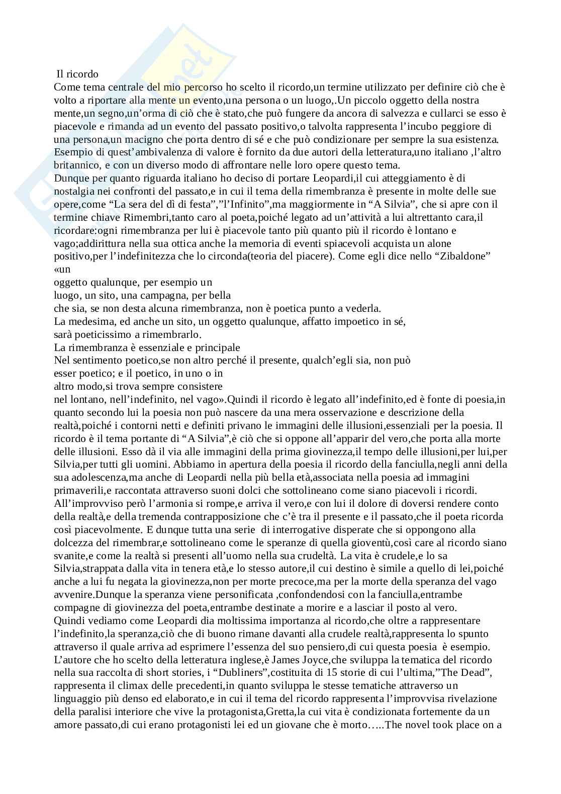 L’autore che ho scelto della letteratura inglese,è James Joyce,che sviluppa la tematica del ricordo