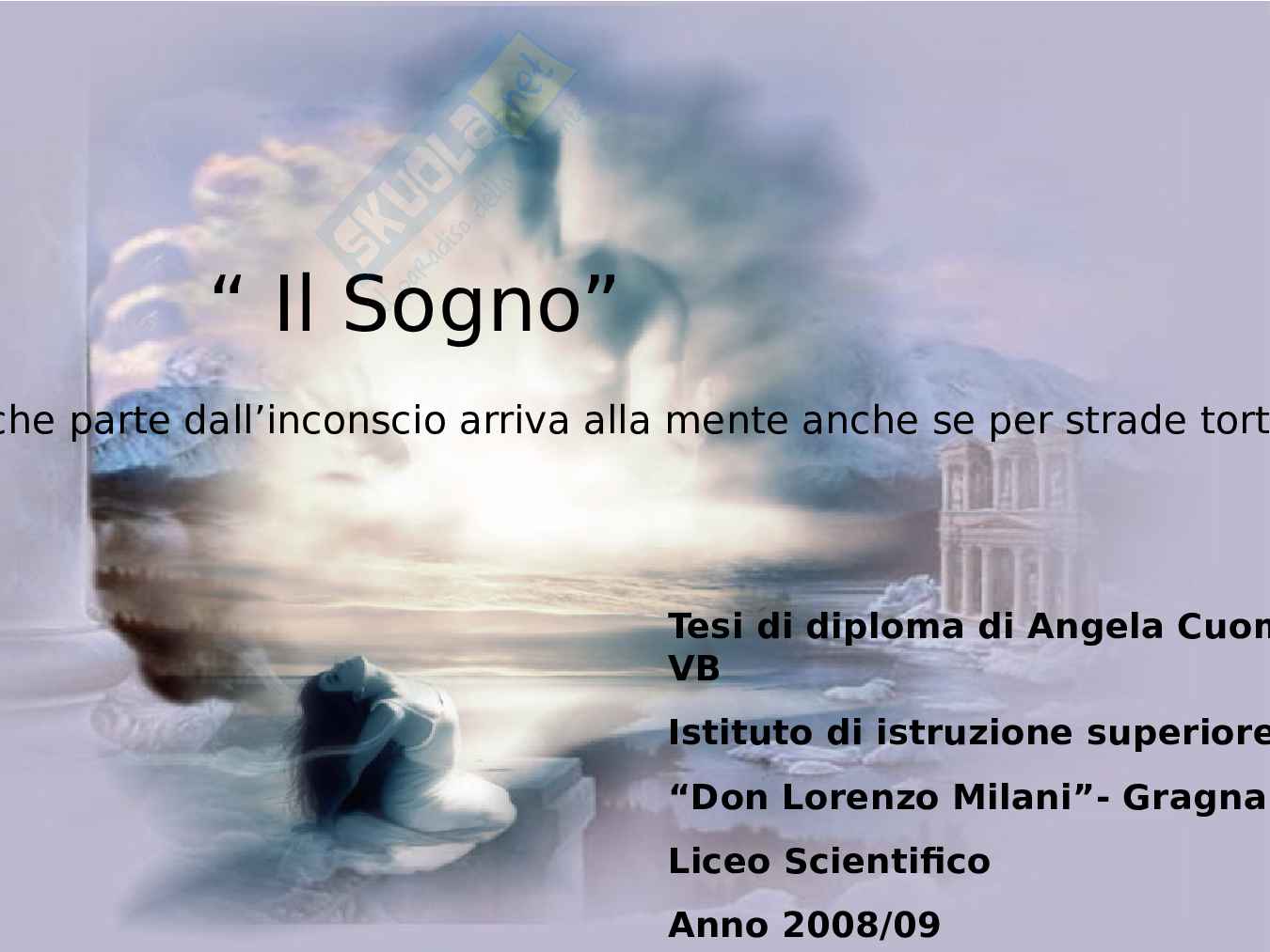 Contenuto Si riferisce a ciò che il sogno racconta, all’esperienza