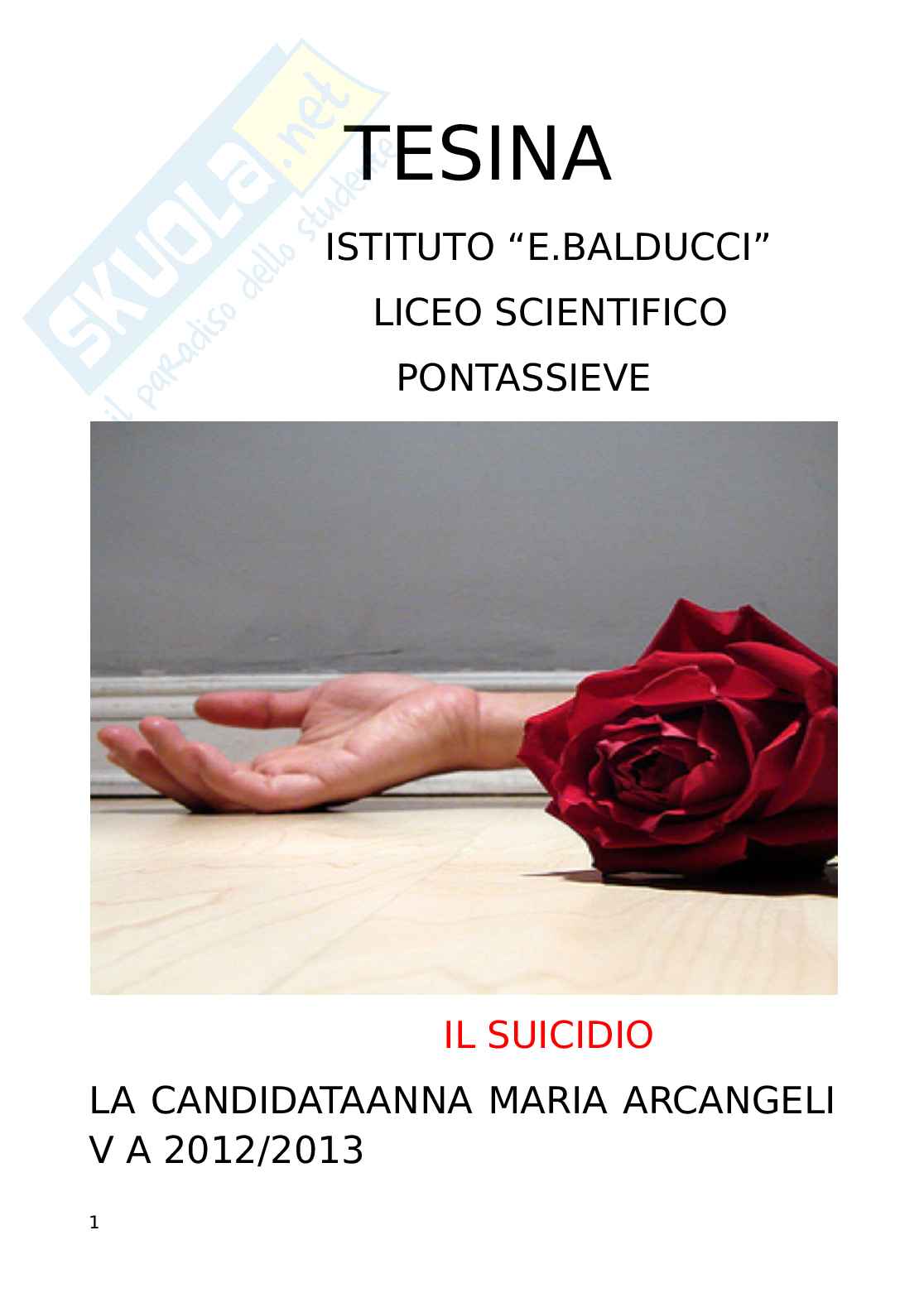 La tesina affronta il tema del suicidio nel pensiero dei filosofi letterati. ha anche riferimenti molto attuali come l'eutanasia o il suicidio sportivo. Nel corso dei miei studi sono stata attratta da svariati argomenti, ma quello che mi ha maggiormente incuriosita è stato il suicidio. Lo reputo un atto che nasconde mille misteri, mille perché, mille ragioni. Bisogna riconoscere che per attuare “la morte di sé stessi” si deve essere davvero convinti e coraggiosi.