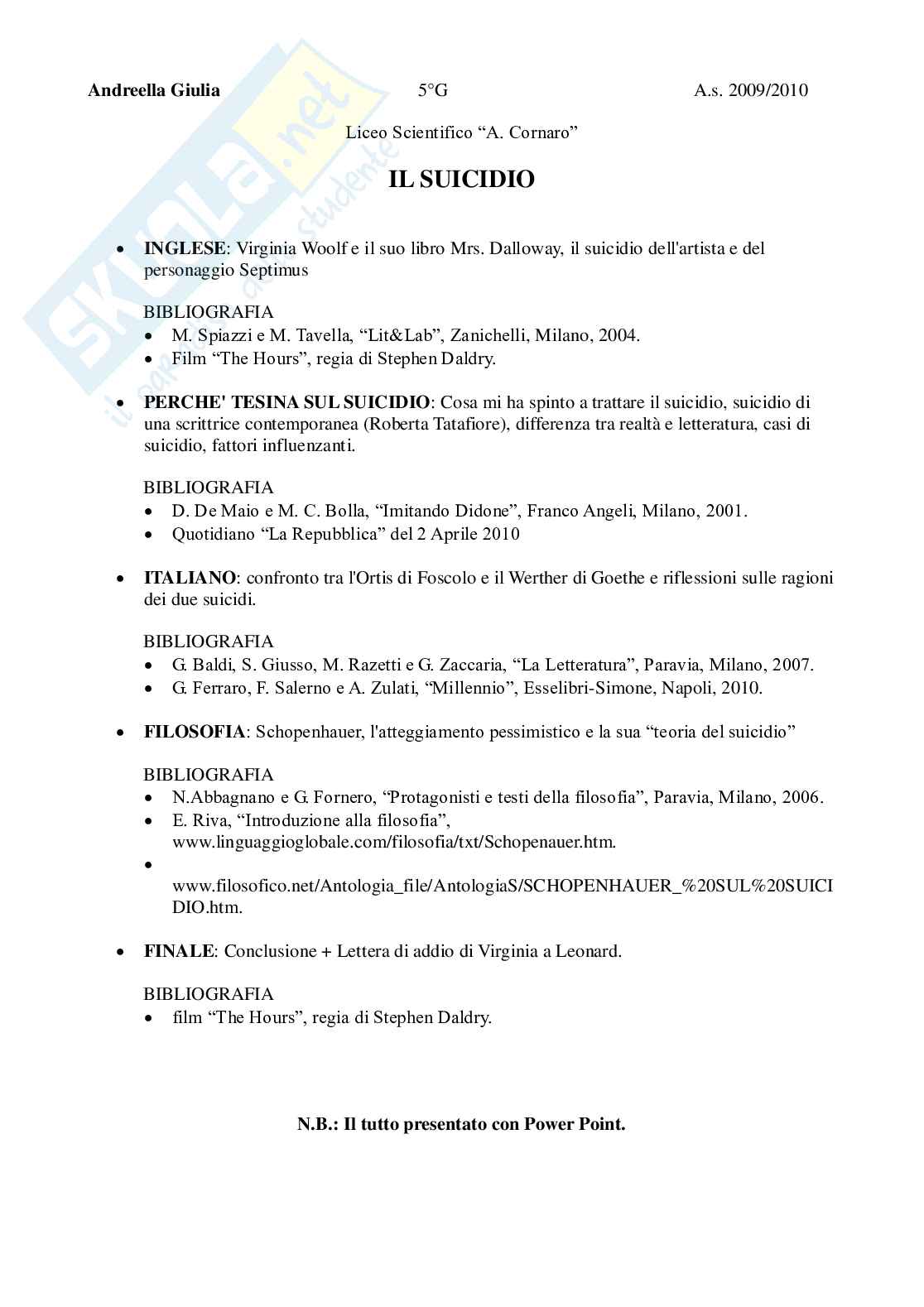 Tesina su: IL SUICIDIO Andreella Giulia 5°G