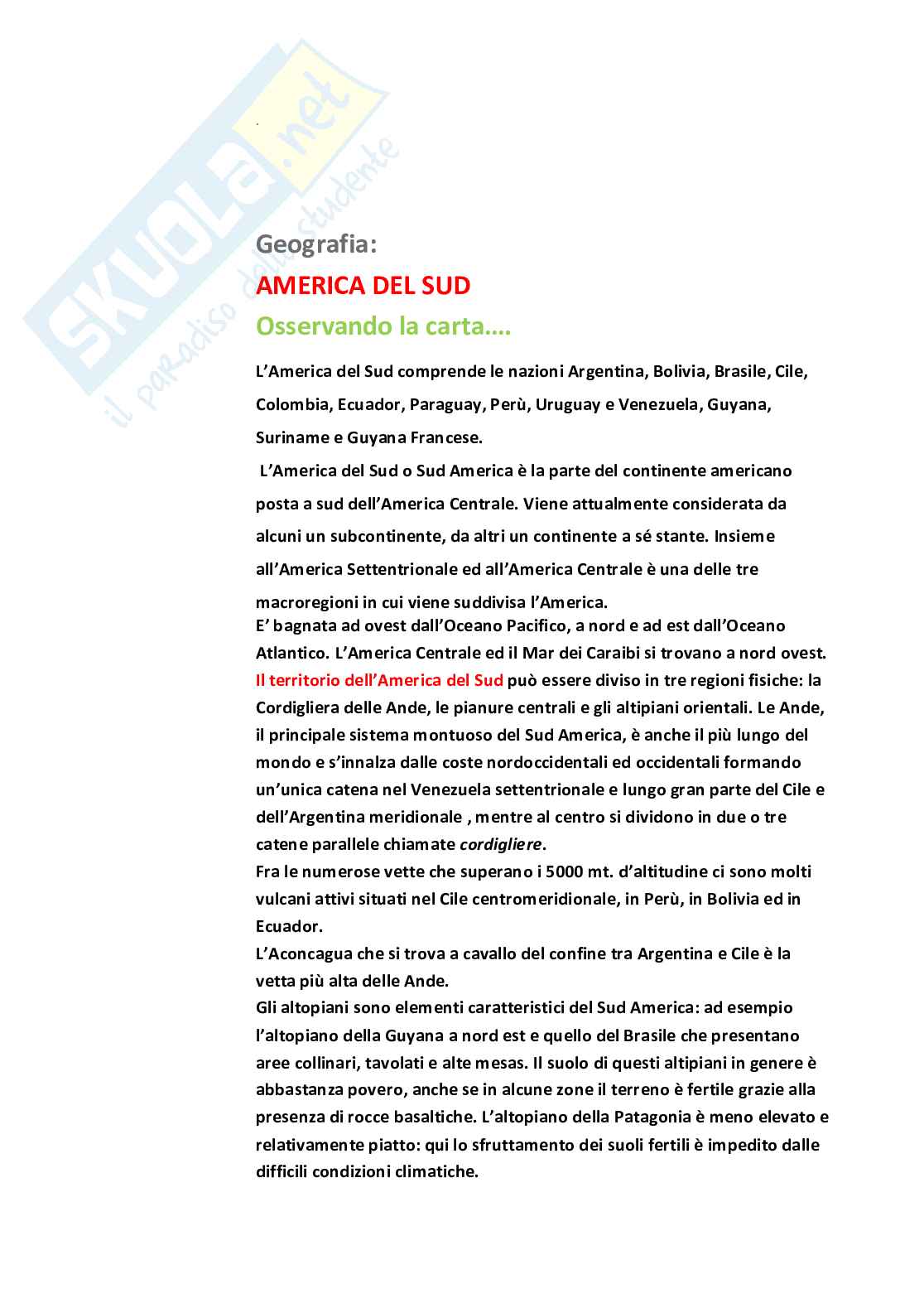 Geografia: America del Sud e Brasile.