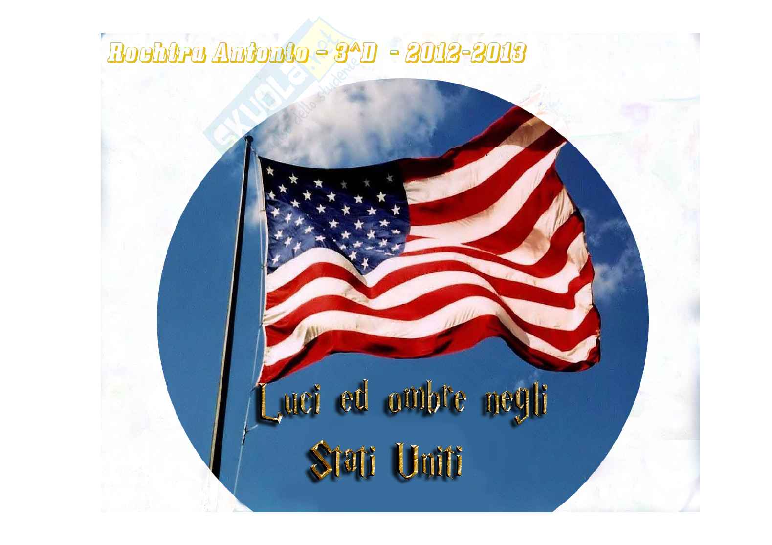 Questa tesina analizza gli Stati Uniti. Argomenti tesina terza media: in Storia il primo dopoguerra negli Stati Uniti, in Geografia gli Stati Uniti, in Scienze motorie l'alimentazione, in Musica il Blues, in Arte Jasper Johns, in Inglese World War I, in Francese le TGV, in Italiano l'ermetismo, in Tecnologia l'elettrotecnica, in Scienze la Luna.