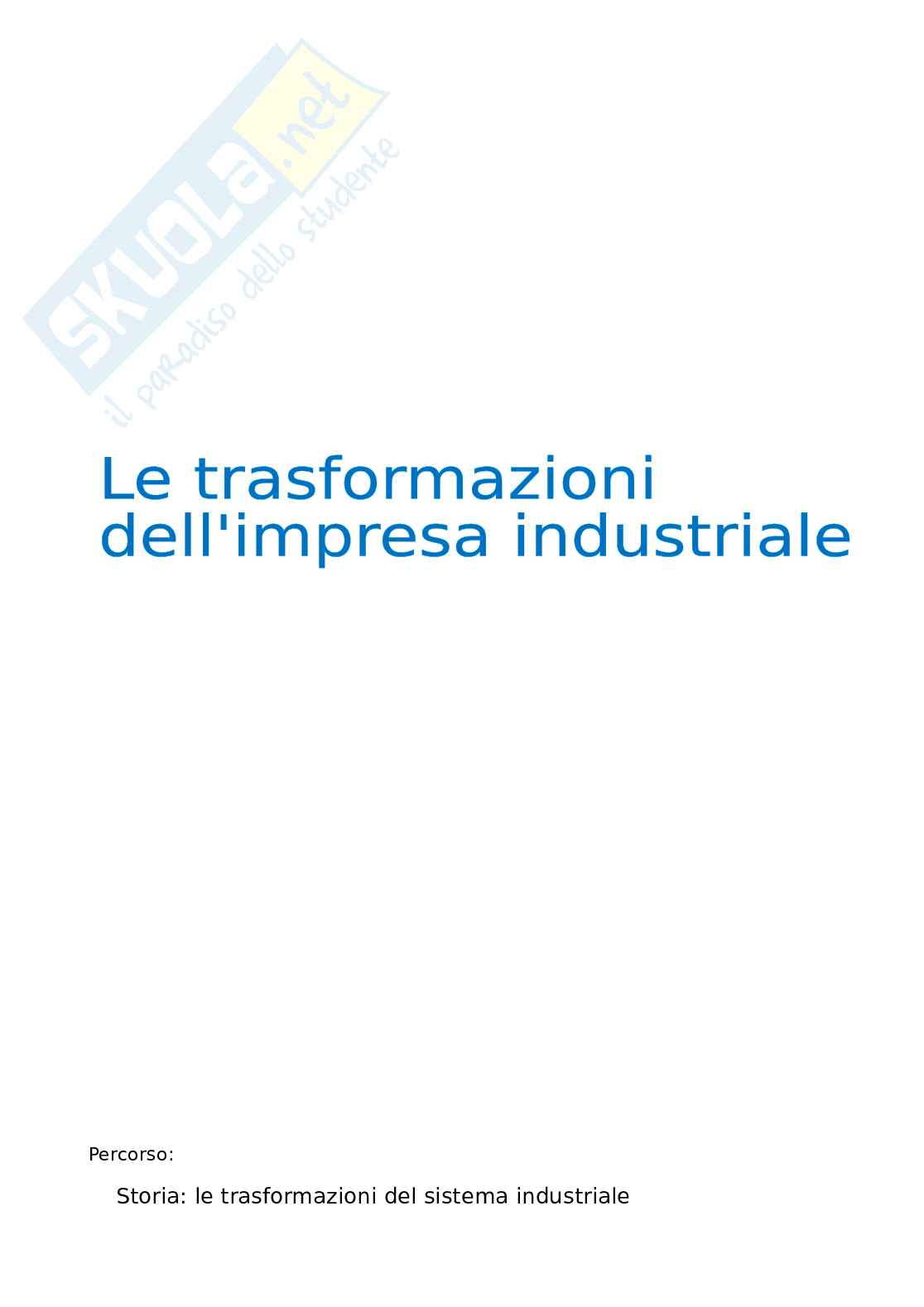 STORIA: Le trasformazioni del sistema industriale