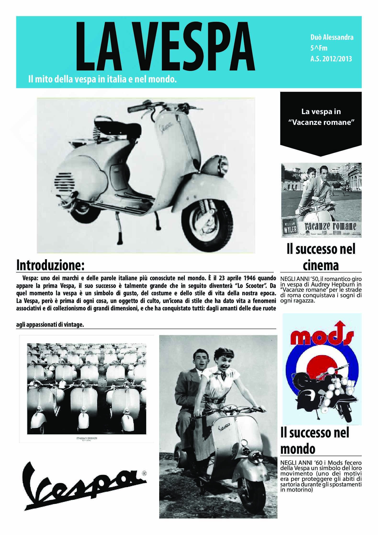 anche di crearne di nuovi e di usare quelli tradizionali in “Vespa”, non risultò, secondo il compratore, al suo livello.