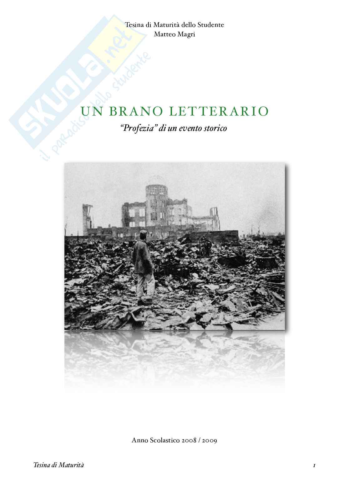 Titolo: Un brano letterario: Profezia di un evento storico
