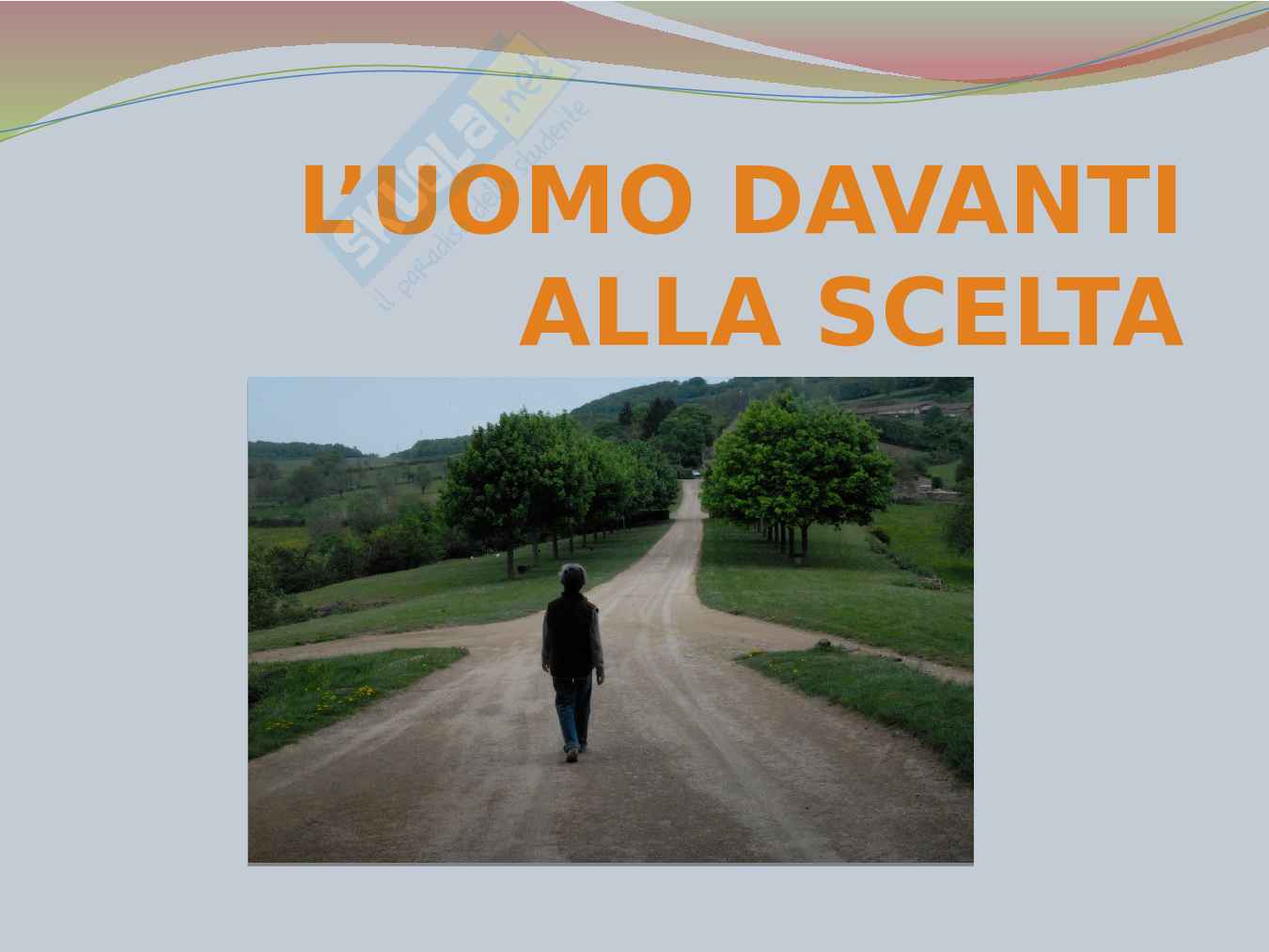 La tesina descrive l'uomo davanti alle scelte da fare nella sua vita. La seguente tesina di maturità permette di effettuare dei collegamenti con le seguenti tematiche: il sistema di controllo dei comportamenti in Biologia, il pensiero filosofico di Soeren Kierkegaard, Eveline in Inglese e infine La coscienza di Zeno in Italiano.