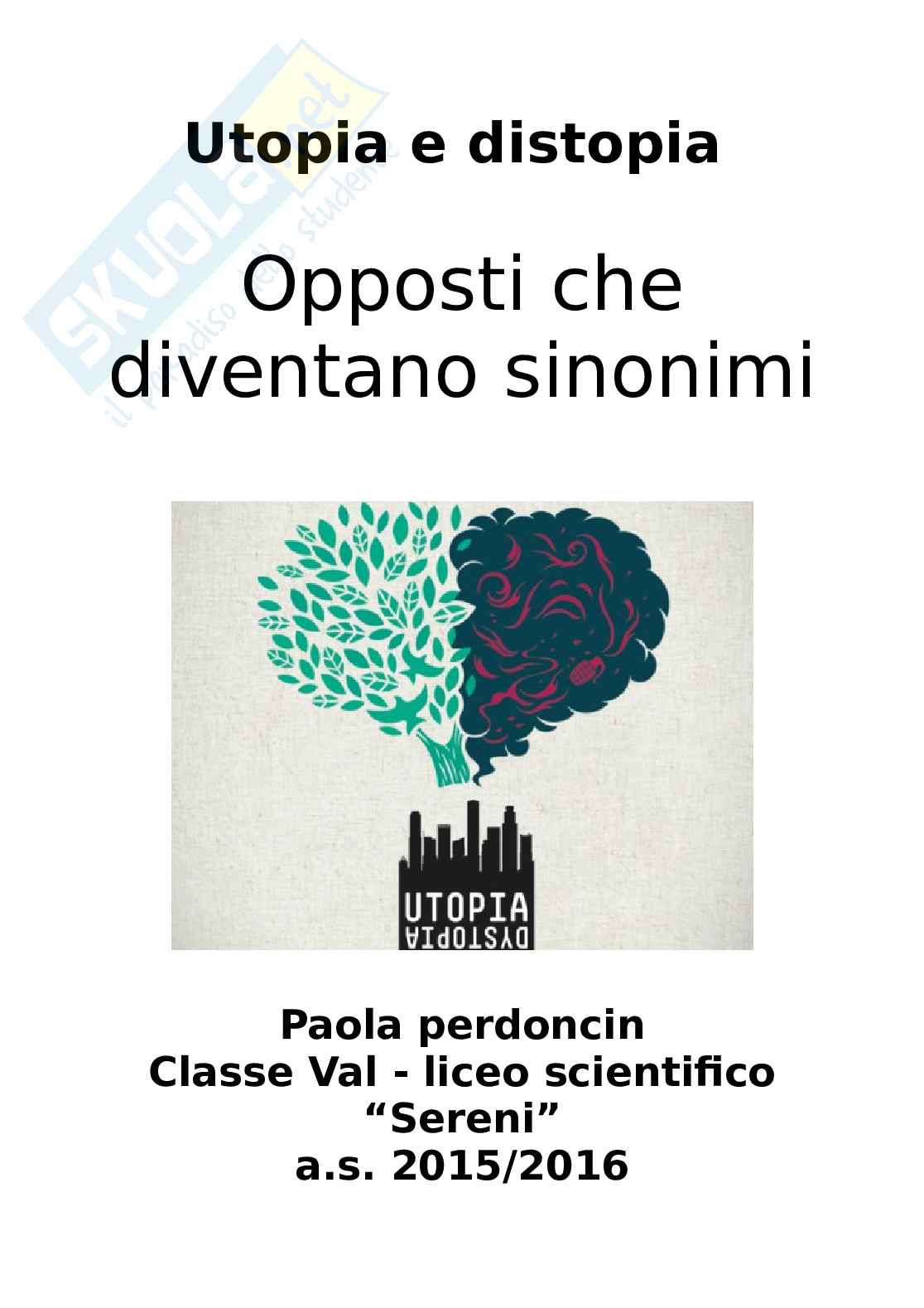 Ho riflettuto a lungo su tutto ciò, e ho voluto approfondire i miei pensieri in questa tesina. In particolare, vorrei parlare di distopia e di utopia attraverso la letteratura, mostrandone diversi esempi. Partirei con una prima definizione di entrambi i termini, passando poi ad un altro elemento che reputo interessante: l'utopia è praticamente impossibile ‒ questo è assodato ‒ ma se invece lo fosse, sotto forma di distopia? Una società perfetta, infatti, non rischia di diventare troppo difficile da sopportare, a lungo andare? Non impone anch'essa delle regole troppo rigide, pur mostrandosi come perfetta agli occhi dei suoi stessi cittadini?