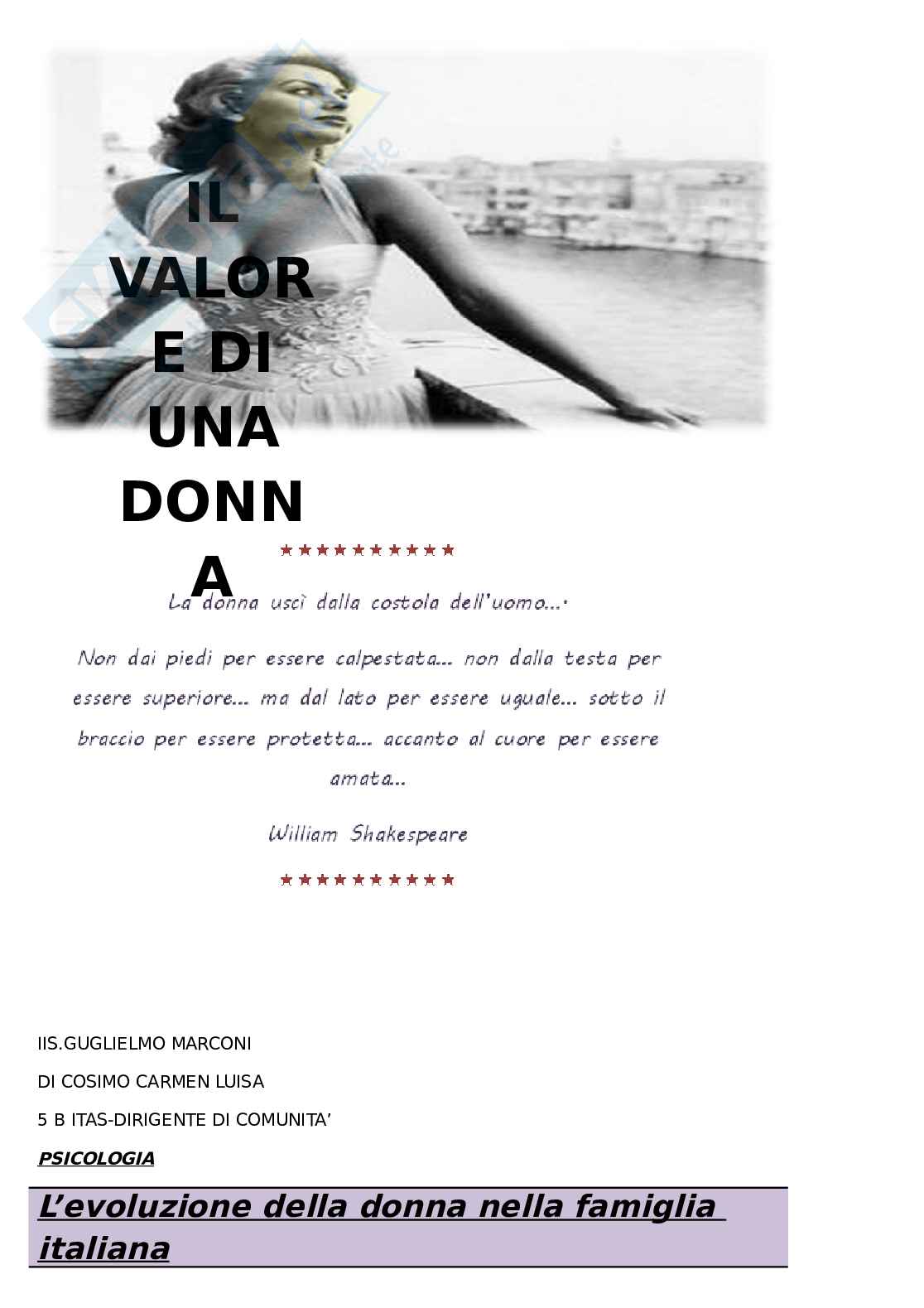 Psicologia - Il cambiamento del ruolo della donna dal secondo dopoguerra a oggi.