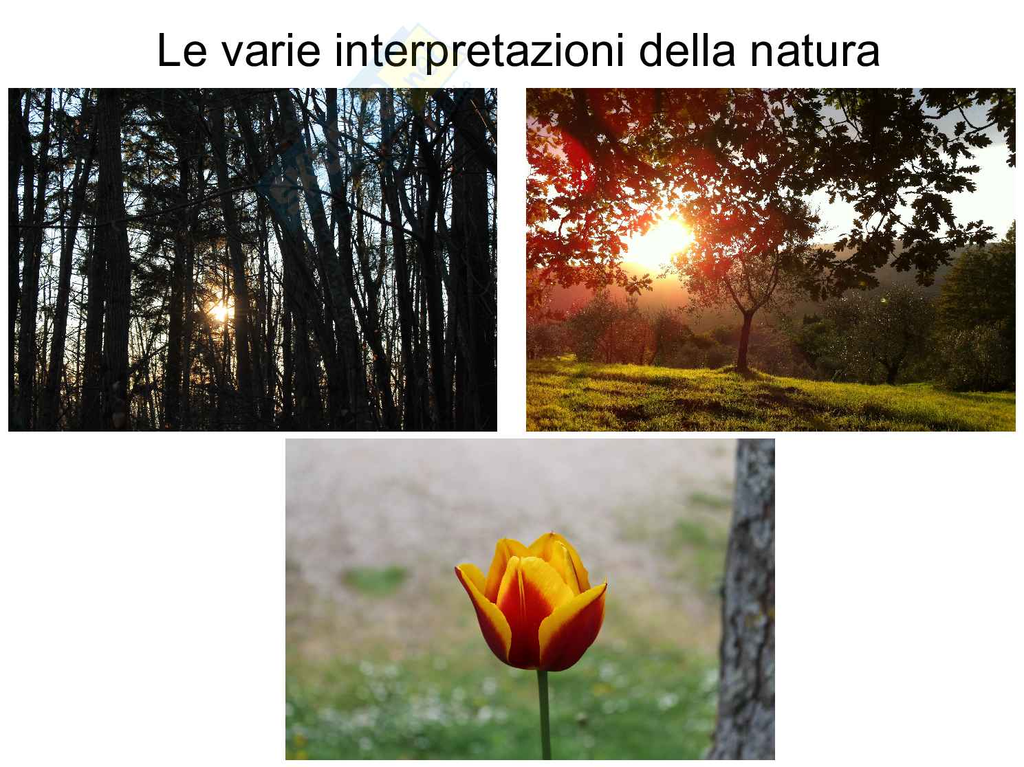 Nella seguente tesina si tratta l'argomento della natura e delle sue interpretazioni in ambito letterario,filosofico,artistico e scientifico.
