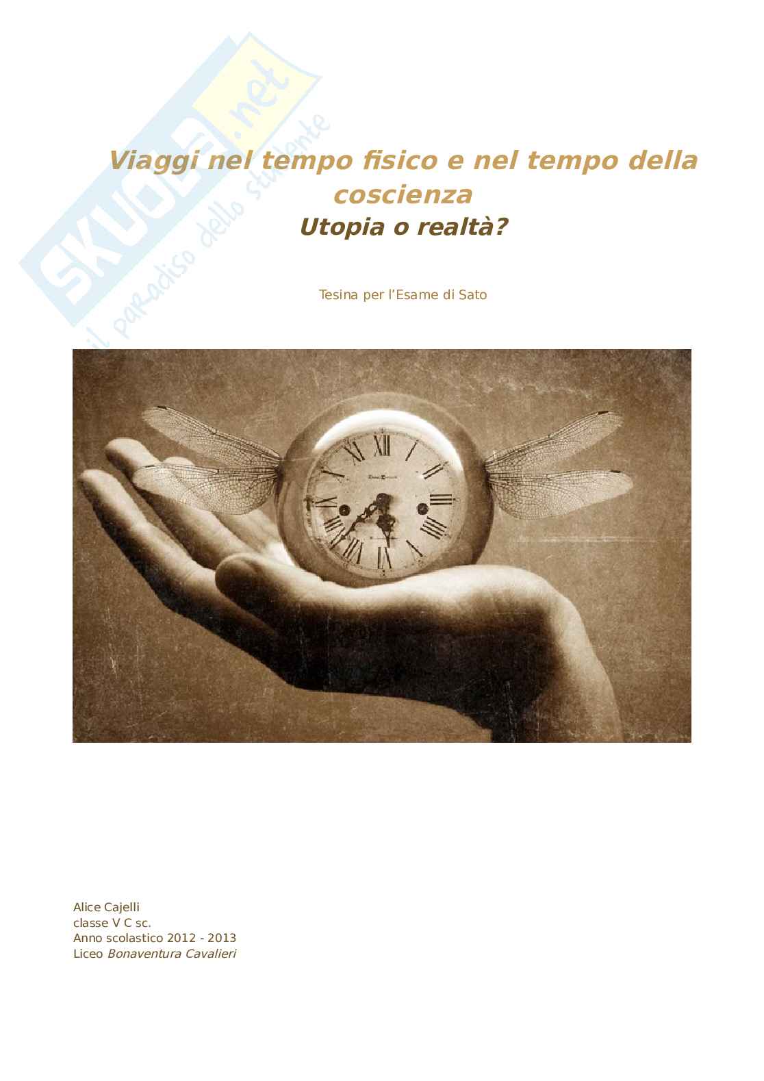 Queste sono le più profonde motivazioni per cui ho scelto di avvicinarmi all’argomento dei viaggi attraverso il tempo sia fisico, sia della coscienza. Grazie alle mie curiosità personali sull'argomento, ho deciso di sviluppare la mia tesina per l'esame di Stato.