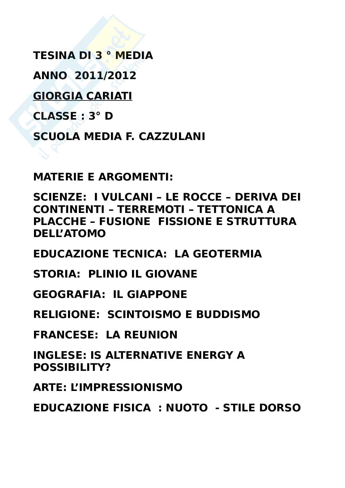 Tesina di terza media: I Vulcani