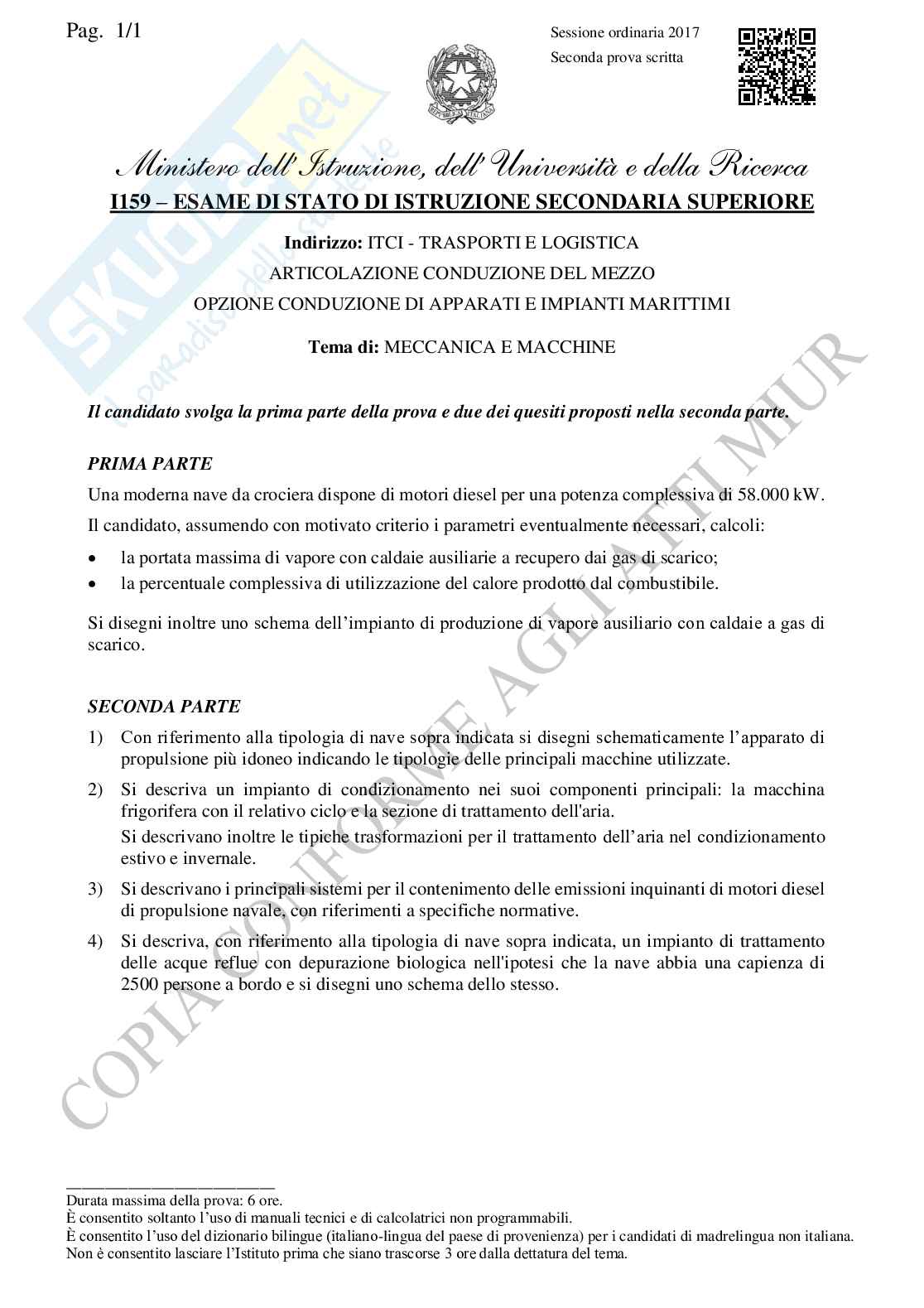La traccia di meccanica e macchine della maturità 2017: ti consigliamo di leggere attentamente il testo prima di svolgerla per avere la certezza di svolgerla secondo le richieste. Meglio non fare errori di distrazione! Pubblicheremo la traccia non appena disponibile.