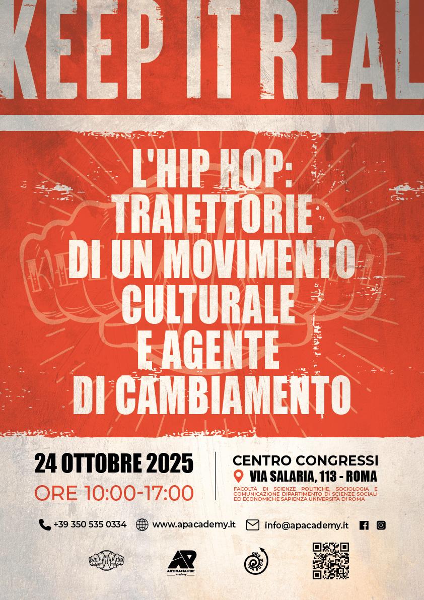 Cinquantadue anni dopo il primo block party di DJ Kool Herc nel Bronx, l’Hip Hop chiama a raccolta il mondo universitario italiano. E lo fa con “Keep It Real – Le traiettorie di un movimento culturale e agente di cambiamento”, la prima convention nazionale dedicata al riconoscimento dell’Hip Hop come strumento educativo e comunitario.