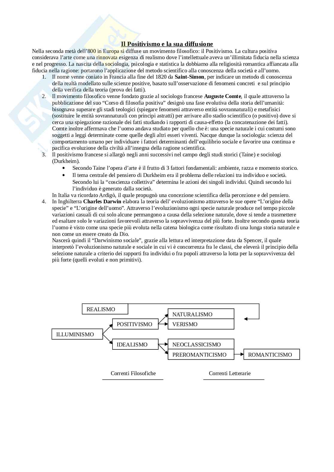 In questo appunto viene descritto il positivismo. Nella seconda metà dell’800 in Europa si diffuse un movimento filosofico: il Positivismo. La cultura positiva considerava l’arte come una rinnovata esigenza di realismo dove l’intellettuale aveva un’illimitata fiducia nella scienza e nel progresso. La nascita della sociologia, psicologia e statistica la dobbiamo alla religiosità romantica affiancata alla fiducia nella ragione: portarono l’applicazione del metodo scientifico alla conoscenza della società e all’uomo.