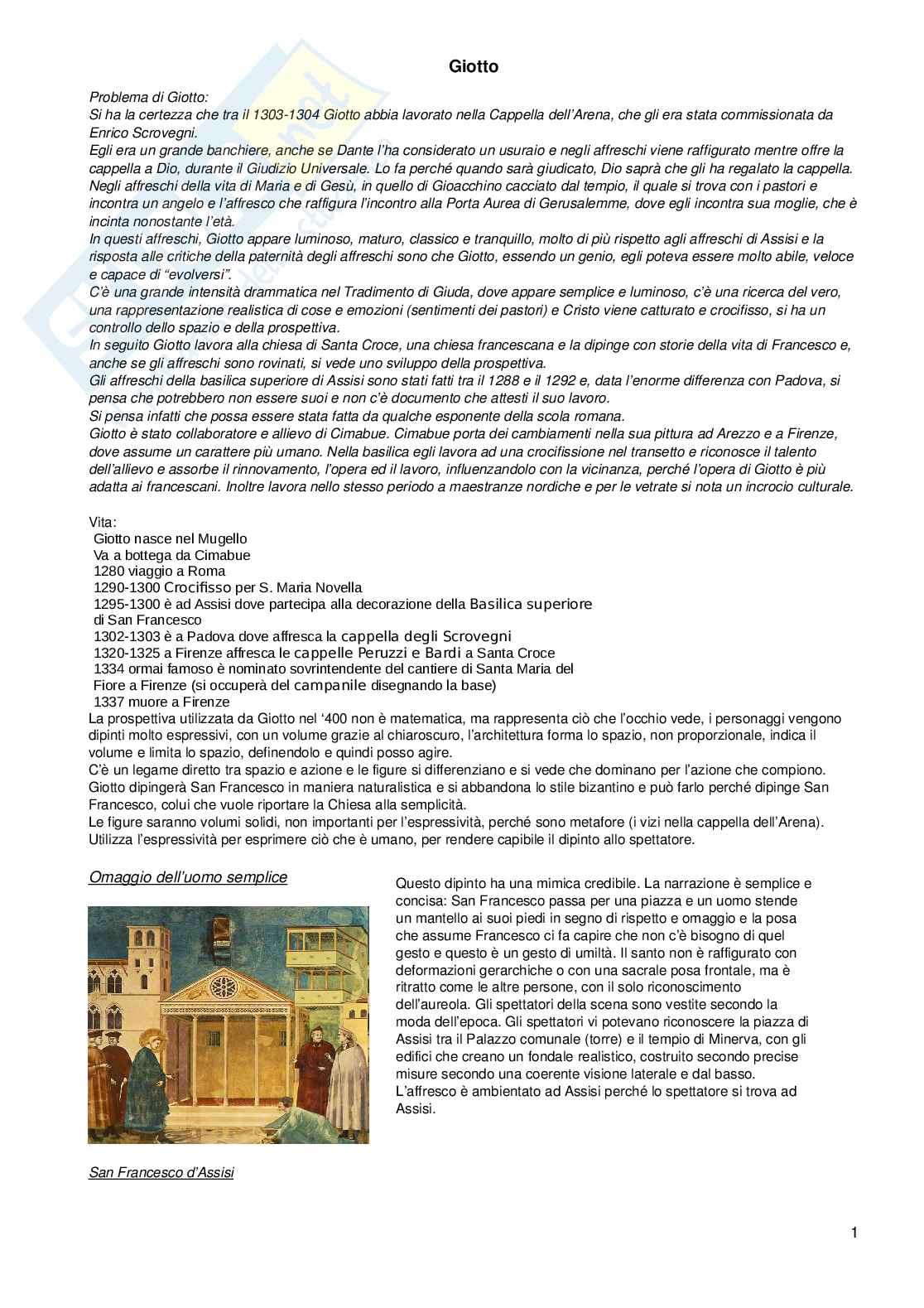 Il file che allego contiene delle descrizioni di alcune opere di Giotto. Nell'allegato vengono descritte le principali opere della giovinezza di Giotto, artista operante in Italia nel corso del 1300. Tra le opere presentate nel file vi sono in particolare modo quelle realizzate dall'artista nel periodo toscano.