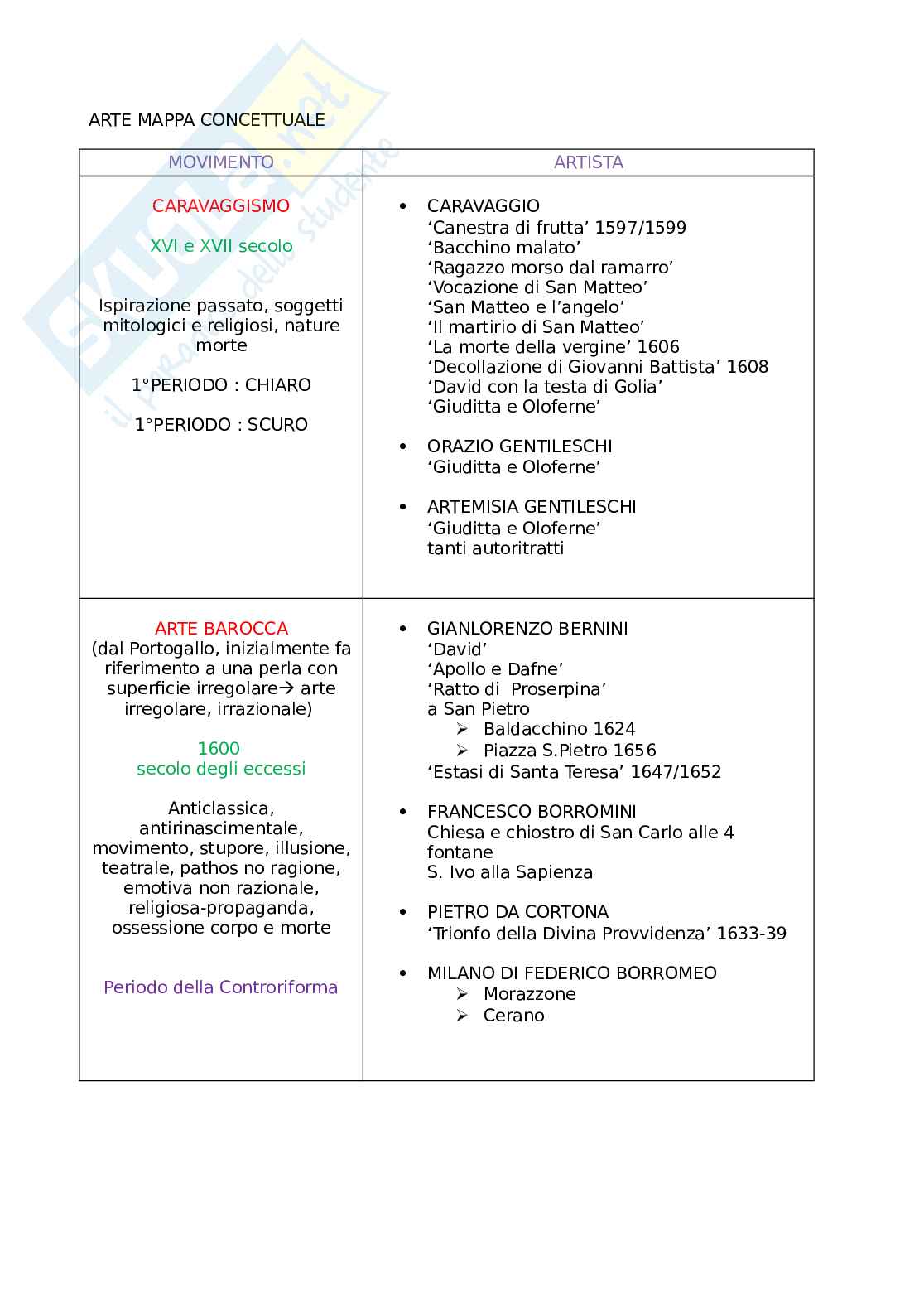 Descrizione schematica del movimento e i massimi esponenti di ciascuno