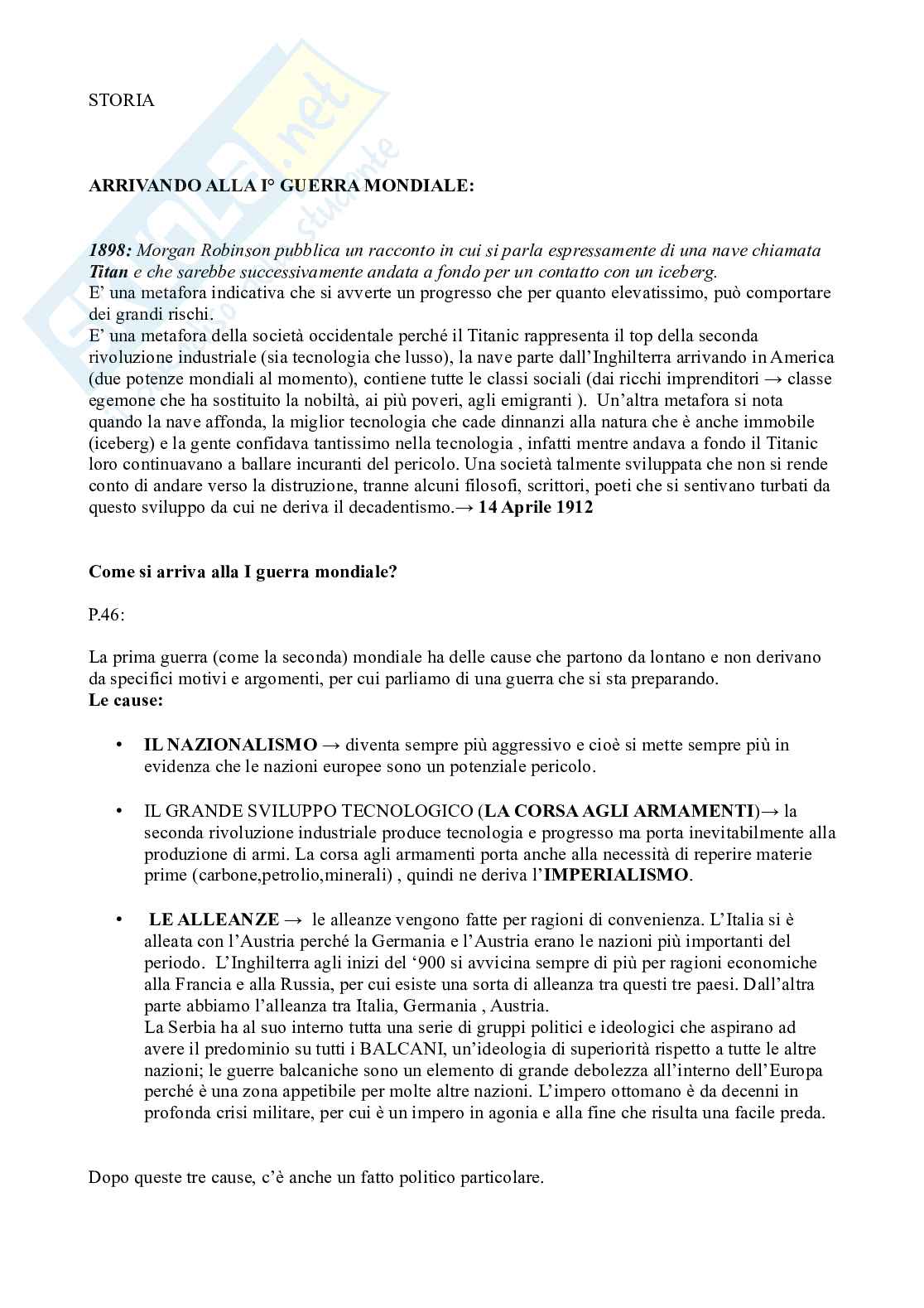 La prima guerra (come la seconda) mondiale ha delle cause che partono da lontano e non derivano da specifici motivi e argomenti, per cui parliamo di una guerra che si sta preparando.