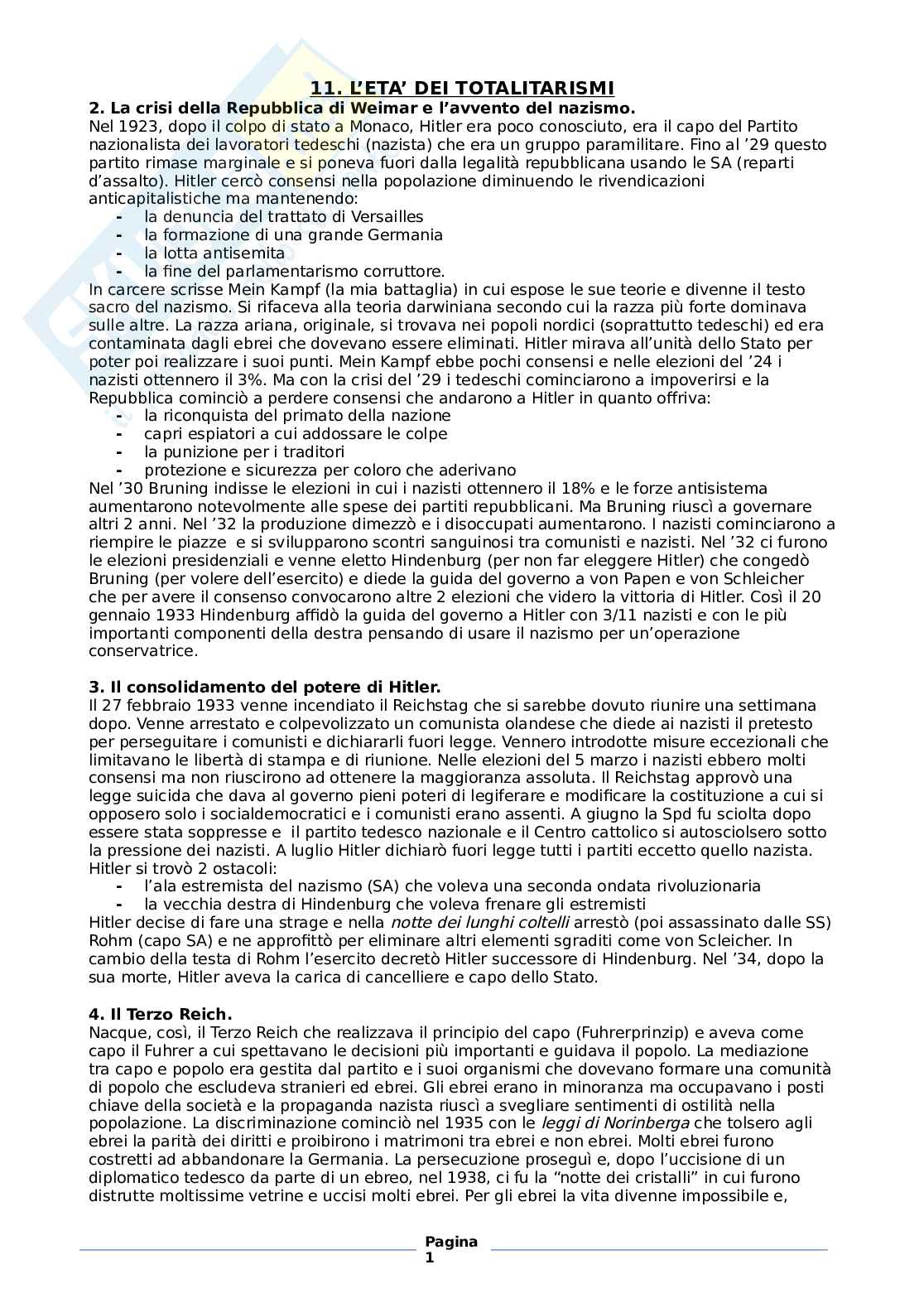 2. La crisi della Repubblica di Weimar e l’avvento del nazismo.