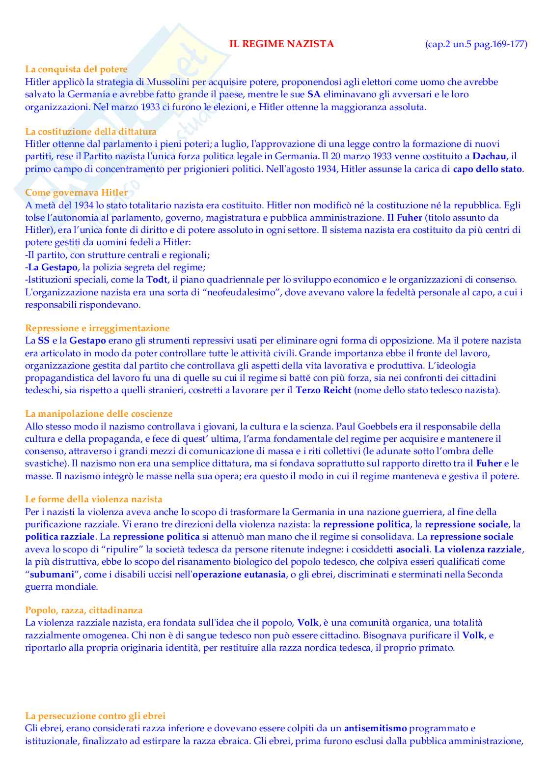 IL REGIME NAZISTA (cap.2 un.5 pag.169-177)