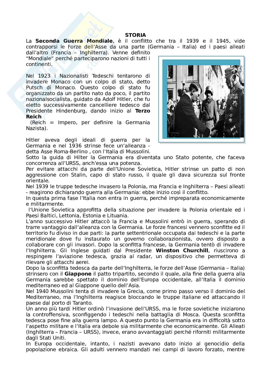 La Seconda Guerra Mondiale, è il conflitto che tra il 1939 e il 1945, vide contrapporsi le Forze dell’Asse da una parte (Germania – Italia) ed i paesi alleati dall’altro (Francia – Inghilterra). Venne definito “Mondiale” perché parteciparono nazioni di tutti i continenti.