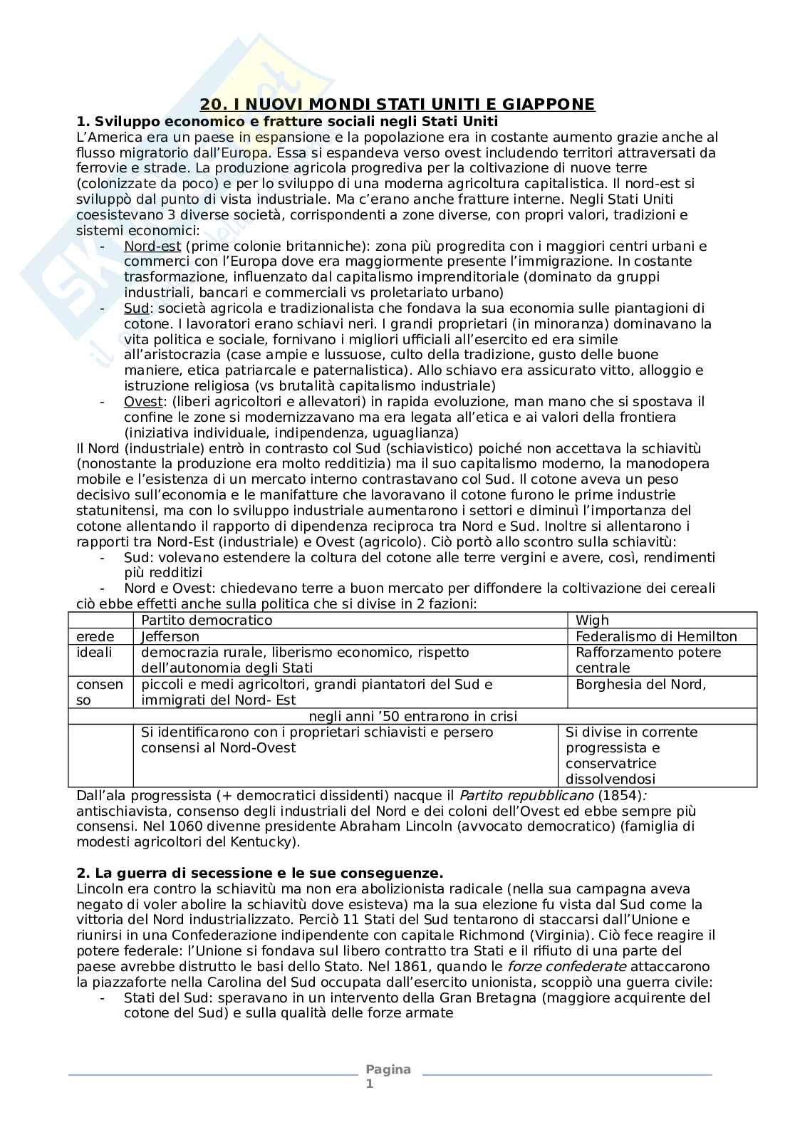 20. I NUOVI MONDI STATI UNITI E GIAPPONE