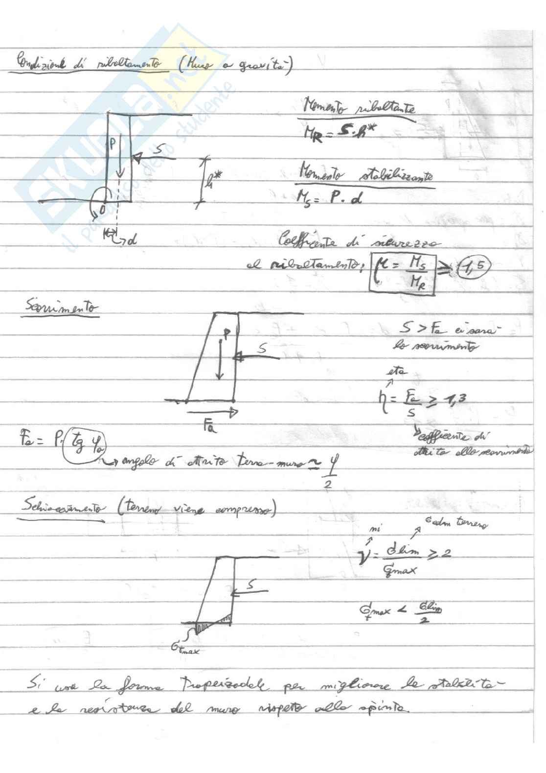 In questo allegato vengono analizzati i muri di sostegno a gravità, le condizioni di stabilità, verifica a ribaltamento, scorrimento e schiacciamento. In questo appunto viene illustrata la teoria riguardante le condizioni d'equilibrio in un muro di sostegno a gravità. Viene spiegata la verifica a ribaltamento, la verifica a scorrimento ed infine quella a schiacciamento.
