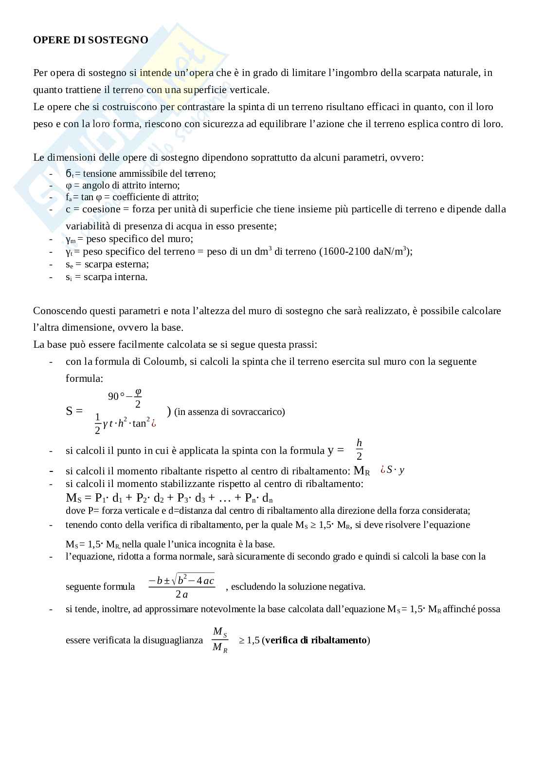 - con la formula di Coloumb, si calcoli la spinta che il terreno esercita sul muro con la seguente formula: