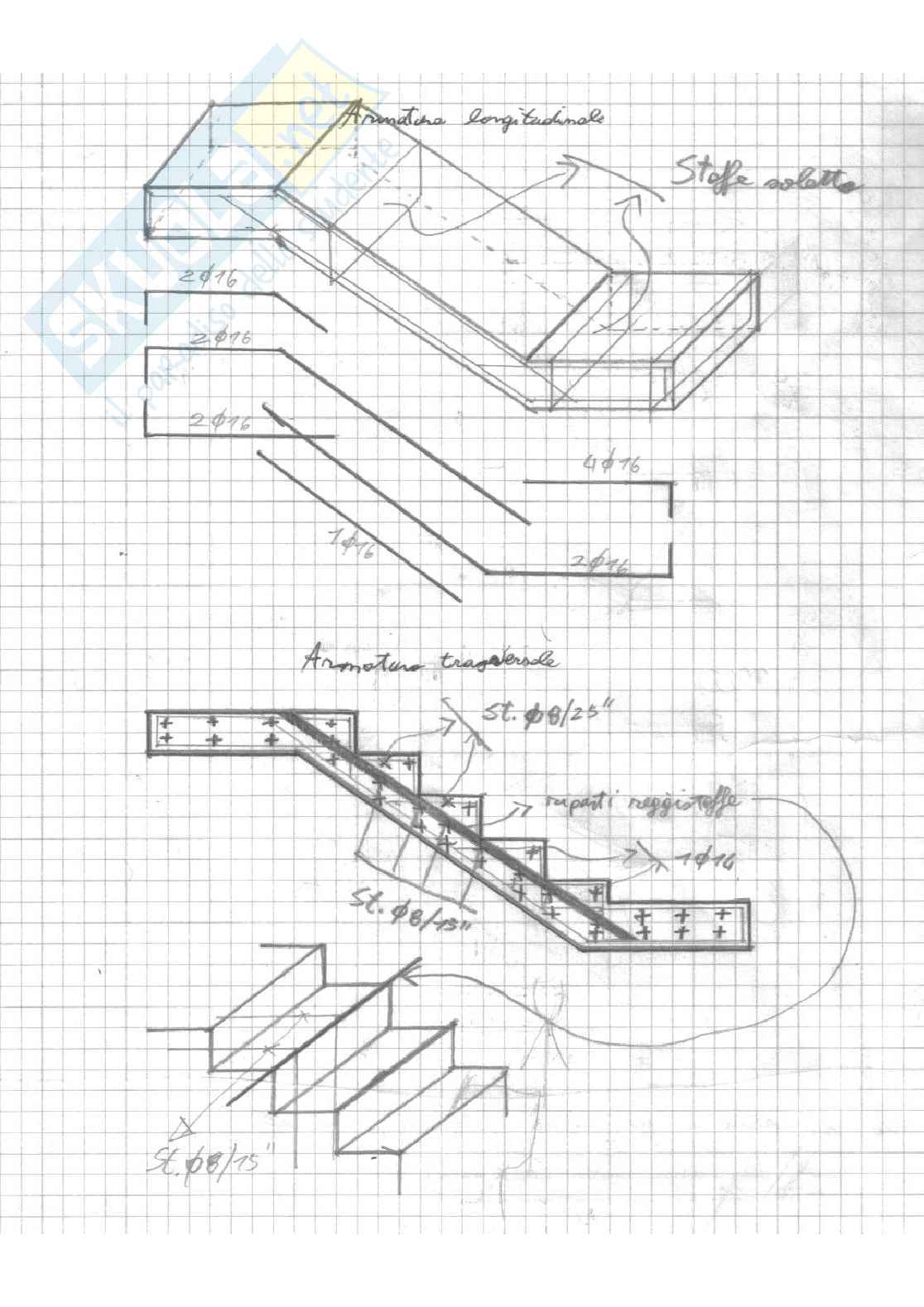 In questo allegato viene presentato un progetto scala a soletta rampante in cemento armato. Viene calcolata l'analisi dei carichi e, con il progetto condizionato, si progetta la scala. Il gradino a una pedata di 30 cm ed un'alzata di 16 cm. La soletta è considerata come una trave incastrata-incastrata di luce di 4,5 metri. Una volta calcolata la quantità di armatura da utilizzare, si dispone l'armatura nel modo riportato in figura.