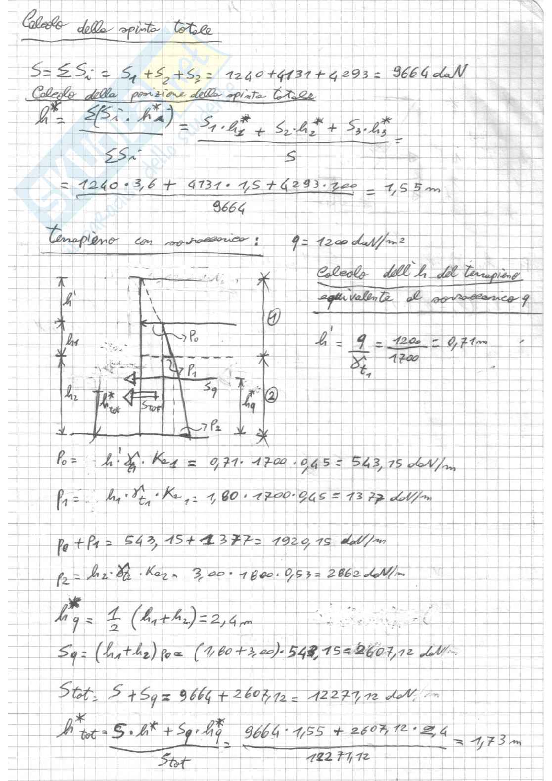 In questo file allegato viene descritta la spinta di un terrapieno con sovraccarico. In questo appunto viene continuato il precedente esercizio di una spinta di un terrapieno con sovraccarico. Viene quindi calcolata la spinta dovuta al carico e quindi la sua posizione, infine viene calcolata la spinta totale e la sua posizione finale.