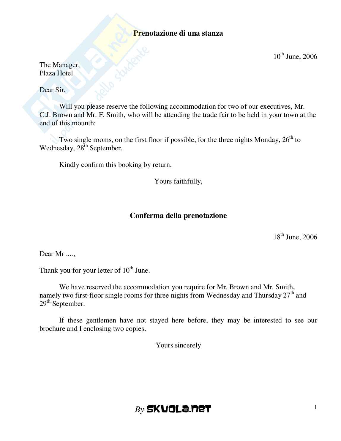 We have reserved the accommodation you require for Mr. Brown and Mr. Smith,