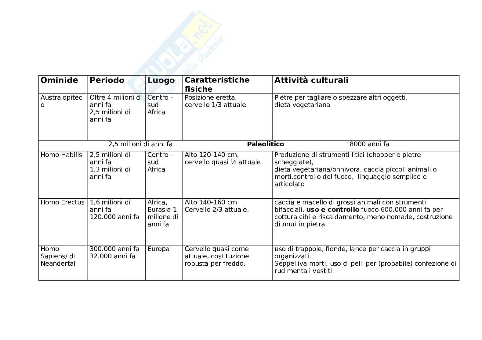 Ominide Periodo Luogo Attività culturali