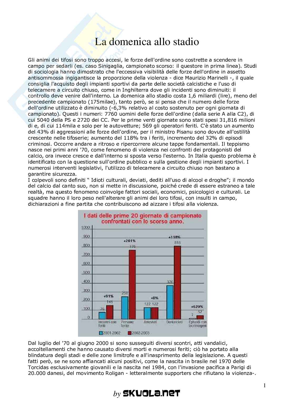 campo per sedarli (es. caso Sinigaglia, campionato scorso: il questore in prima linea). Studi