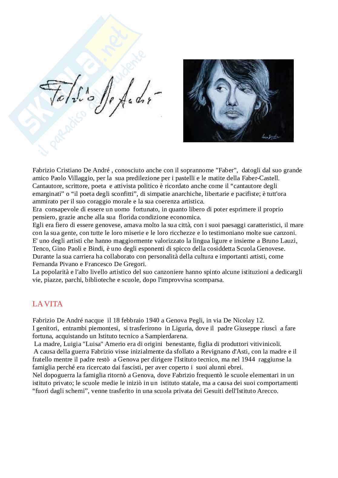 Introduzione Fabrizio De Andrè percorso