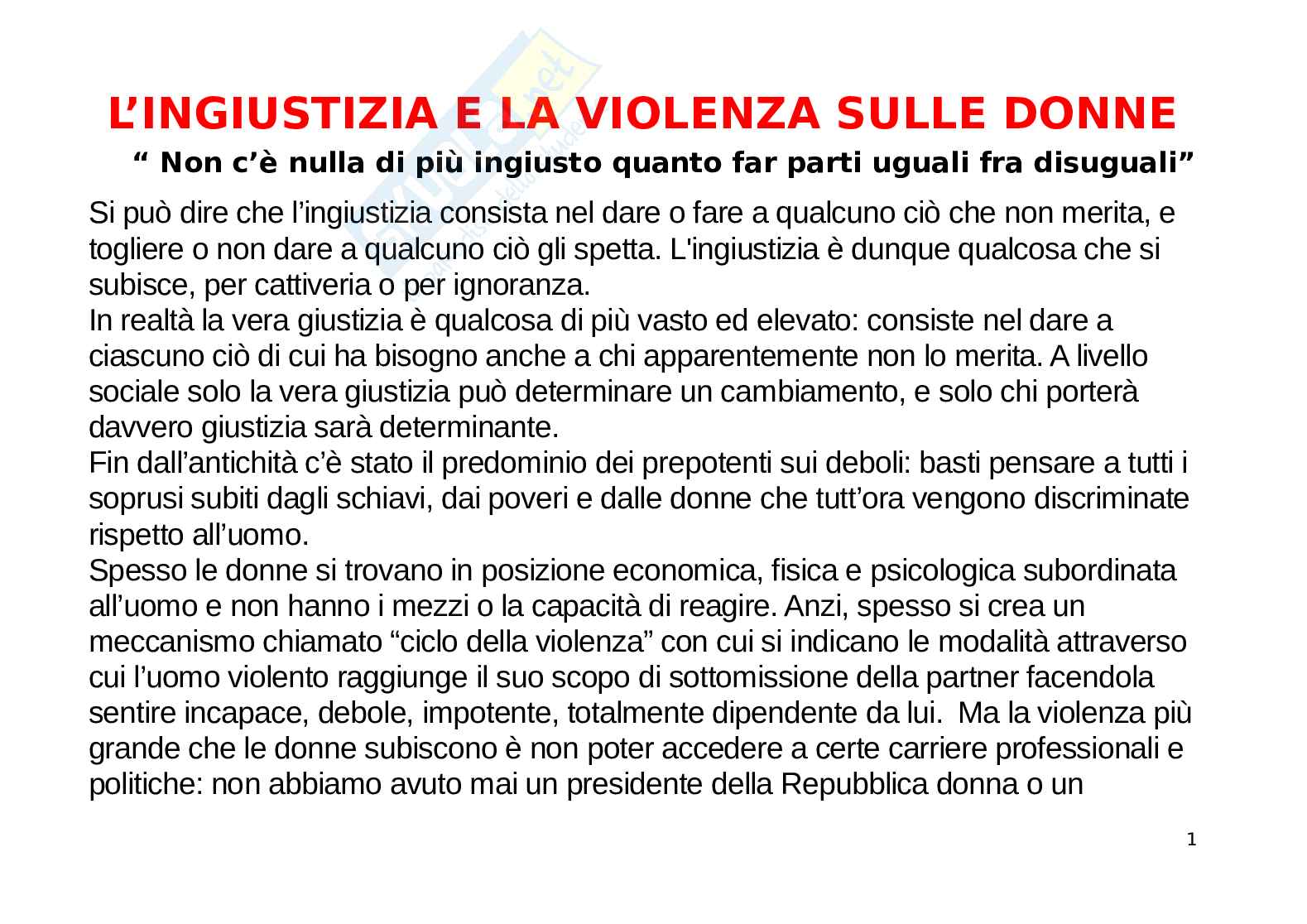 L'ingiustizia e la violenza sulle donne
