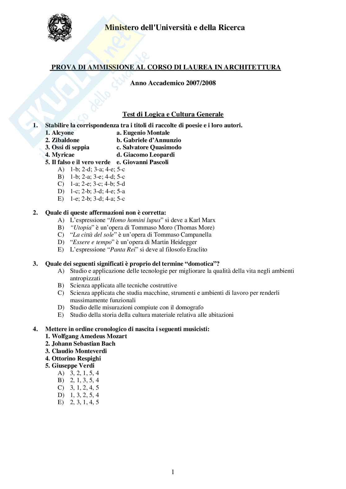 NOTA. Per la domanda n.35 la risposta esatta è alla lettera E).