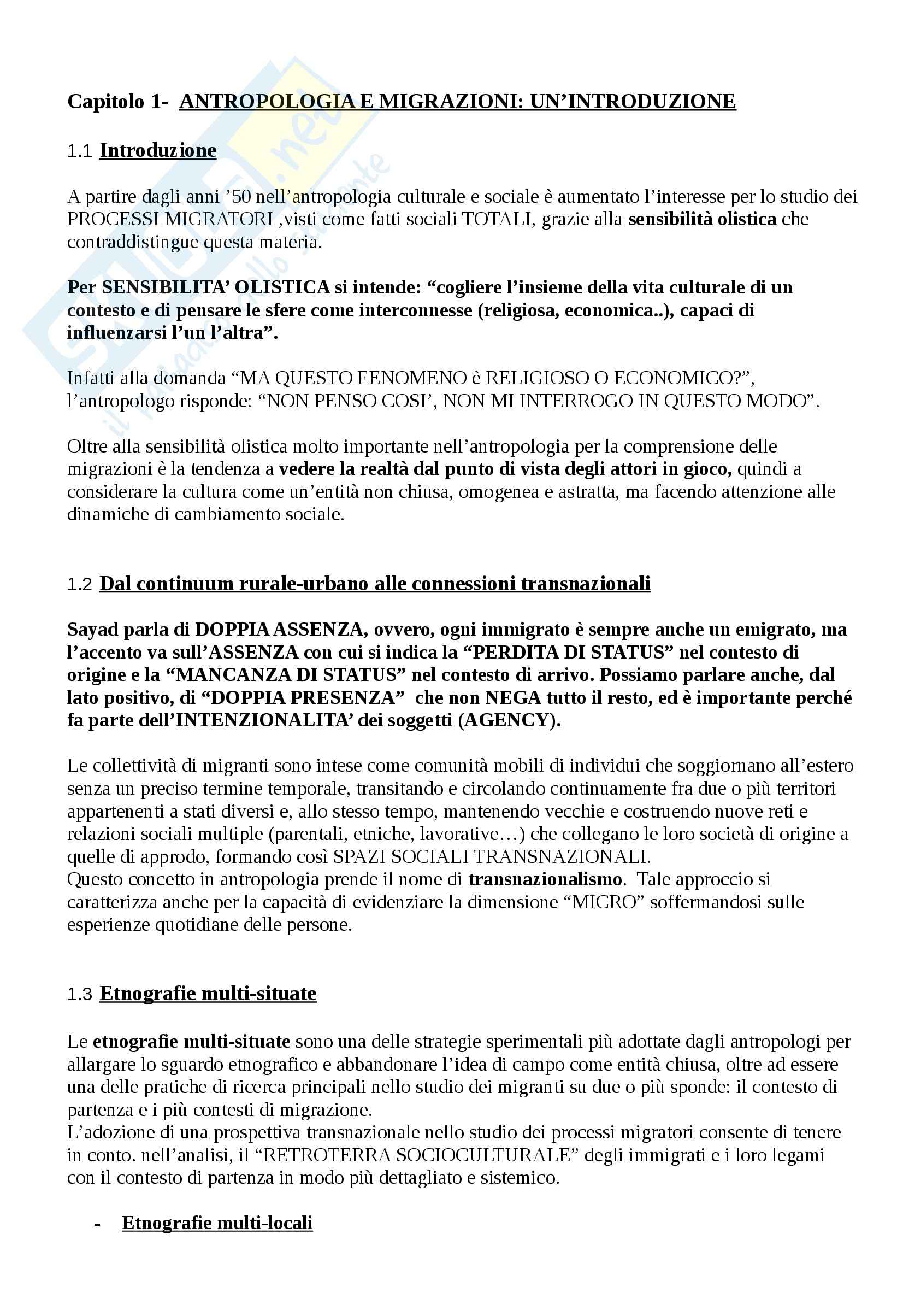 Riassunto esame Antropologia dei Processi Migratori, prof. Riccio, libro consigliato Migrazioni transnazionali dall…