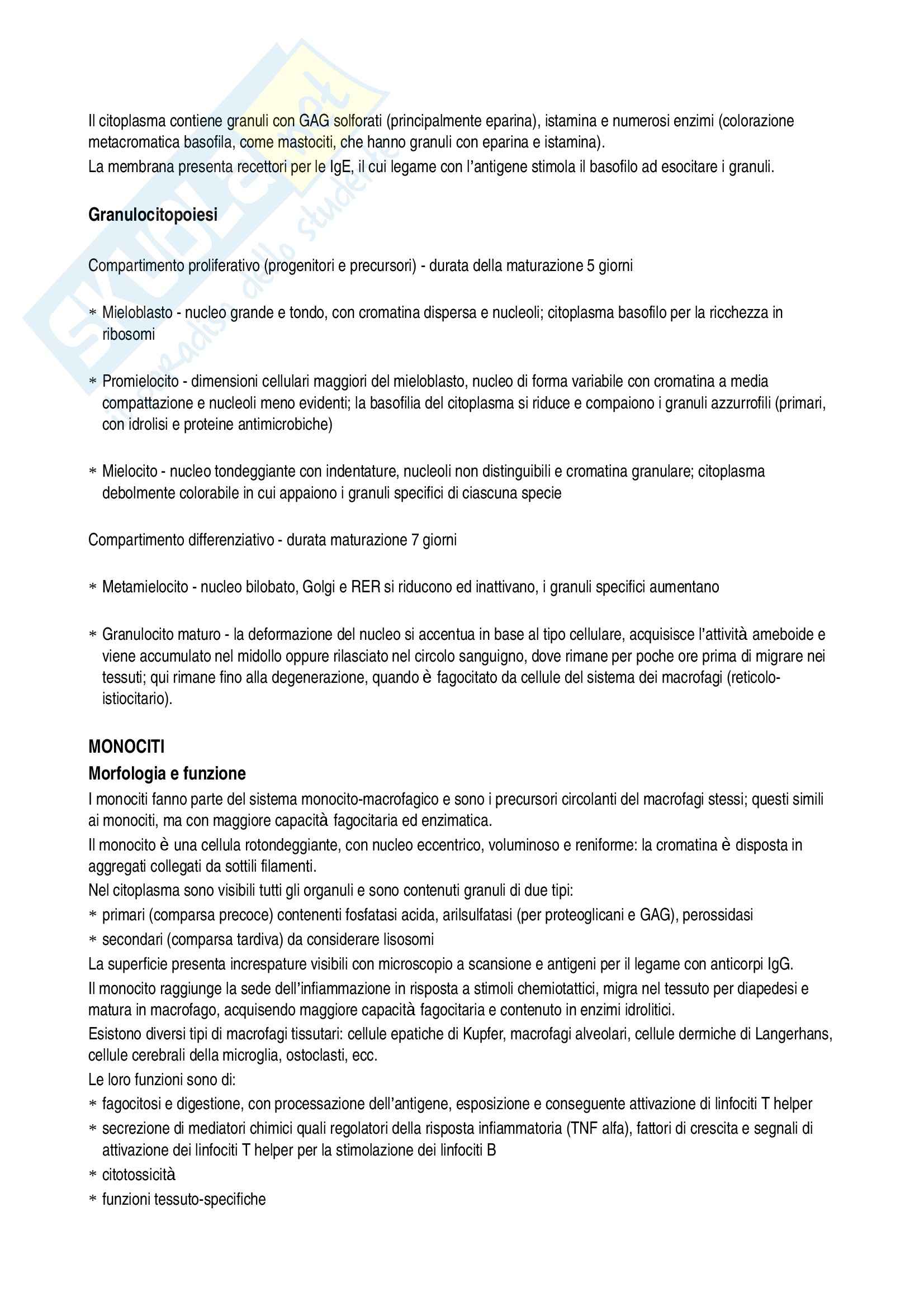 Riassunto esame Istologia, prof. Procacci, libro consigliato Istologia, Monesi