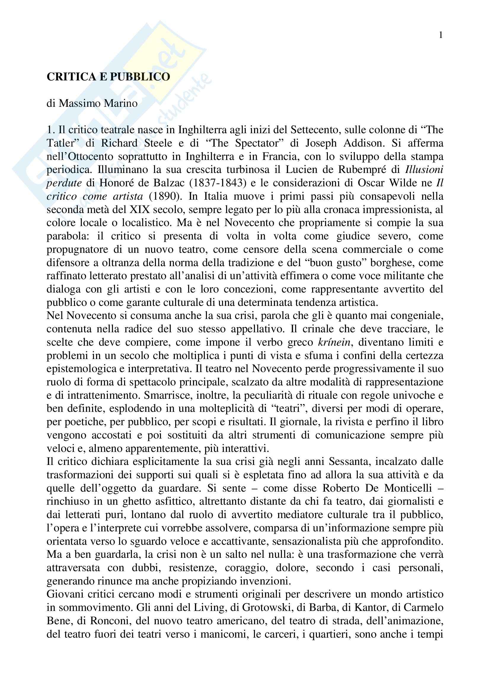 Riassunto esame Promozione e informazione teatrale, prof. Ossicini, libro consigliato Lo sguardo che racconta, Mari…