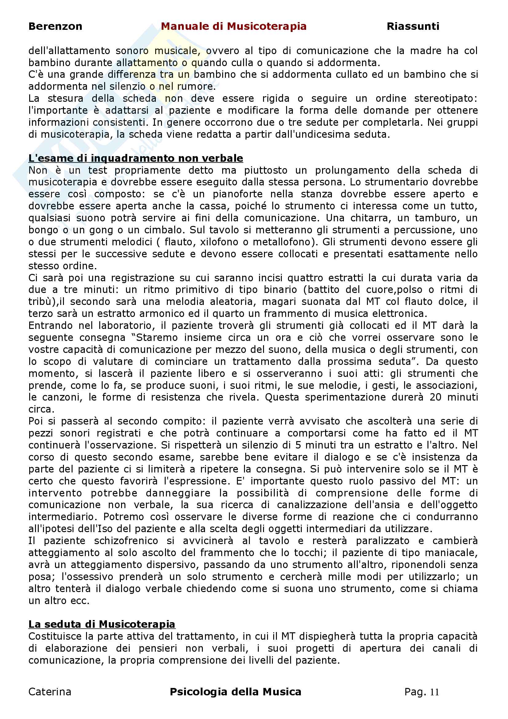 Riassunto esame Psicologia della musica, prof. Caterina, Manuale di musicoterapia di Benenzon